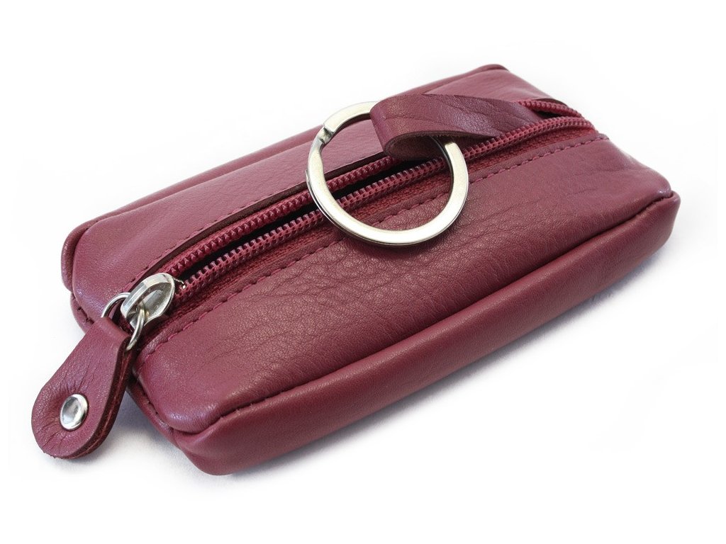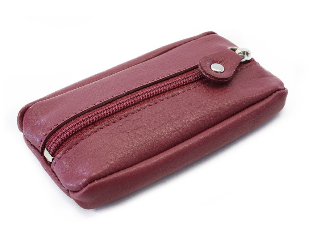 Bordovo červená kožená kľúčenka so zipsovým vreckom 619-2418-32