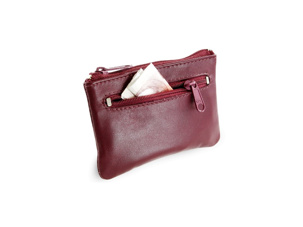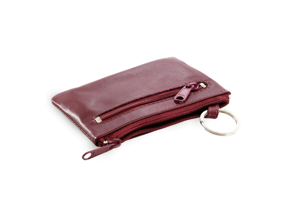 Burgundy kožená dvojzipsová kľúčenka 619-0370-34