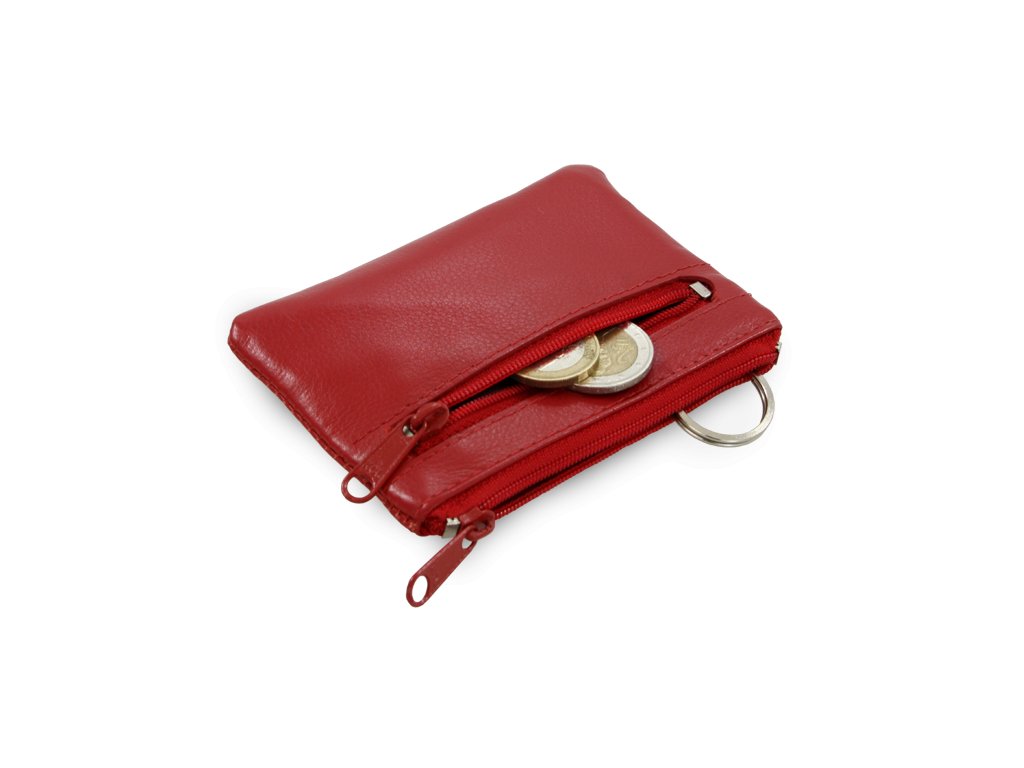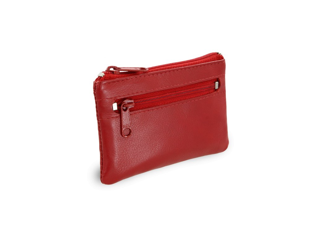 Červená kožená dvojzipsová kľúčenka 619-0370-31