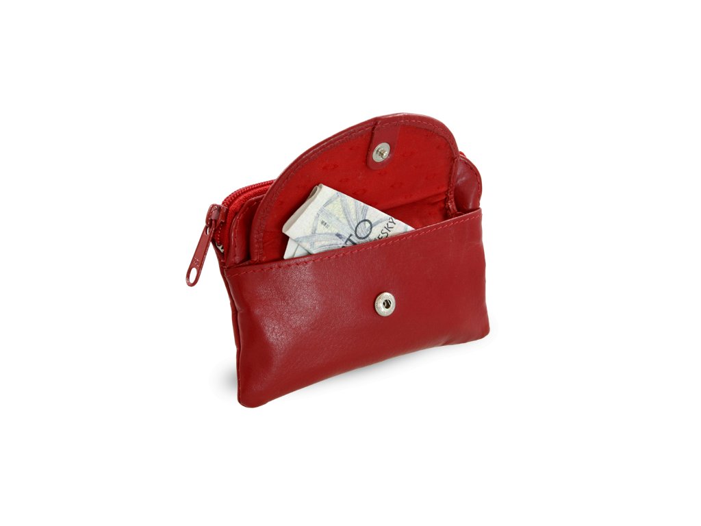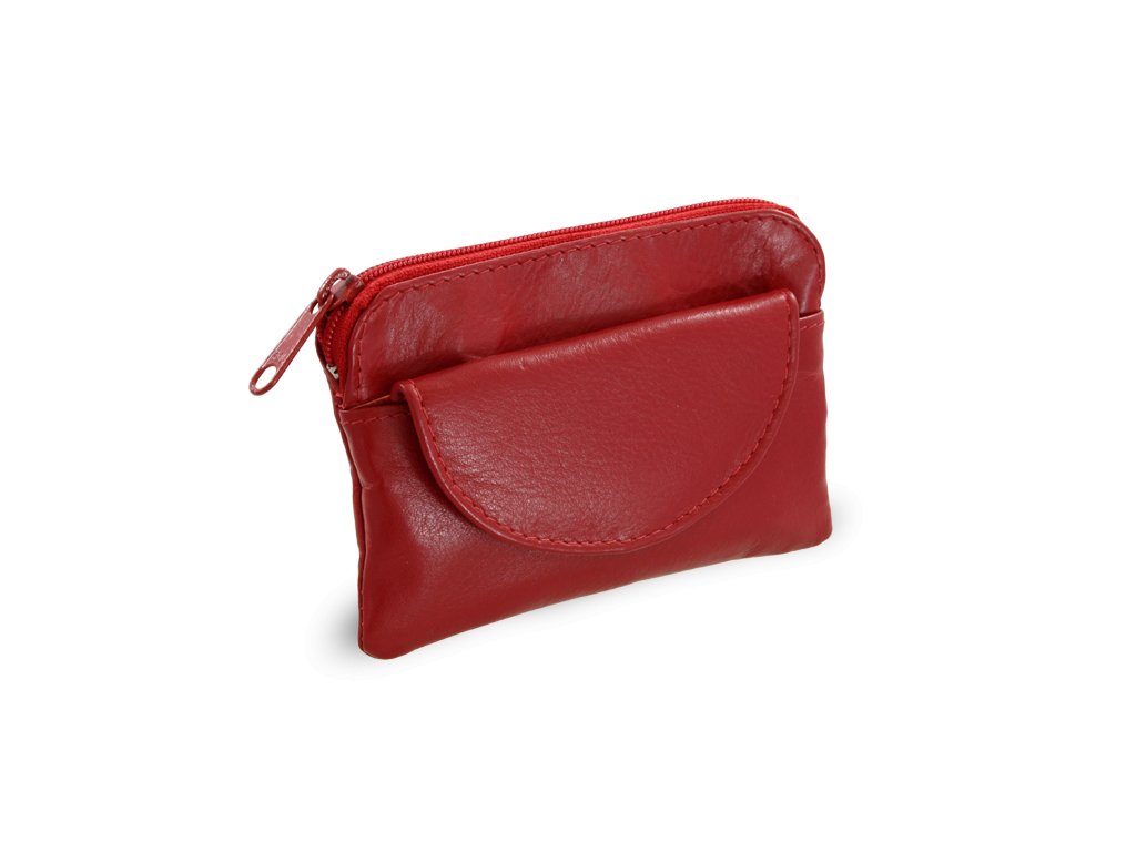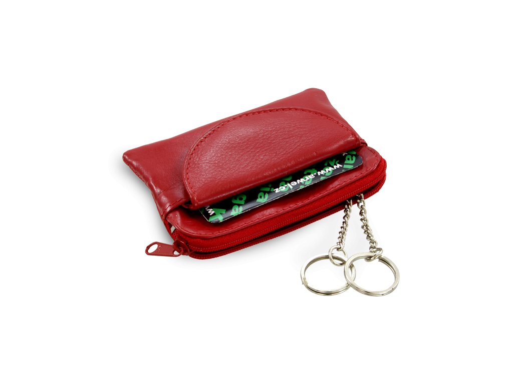Červená kožená kľúčenka so zipsovým a poklopovým vreckom 619-0365-31