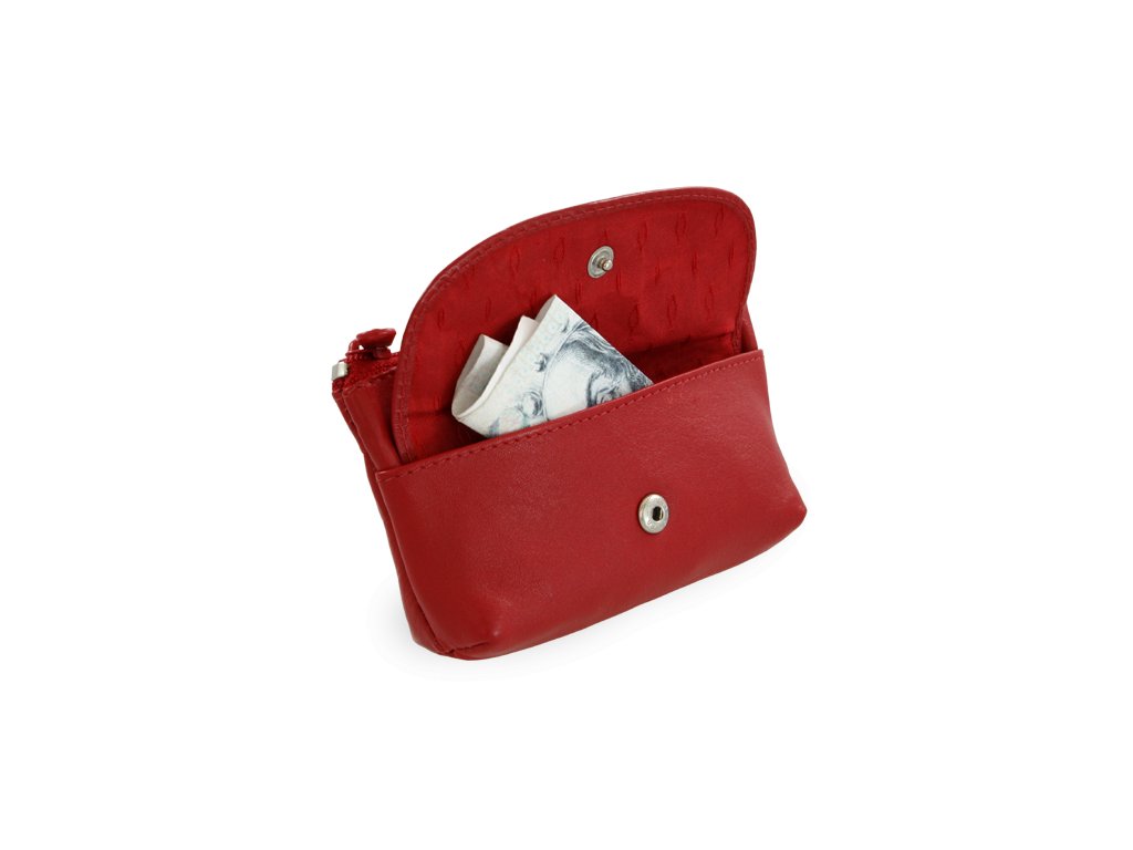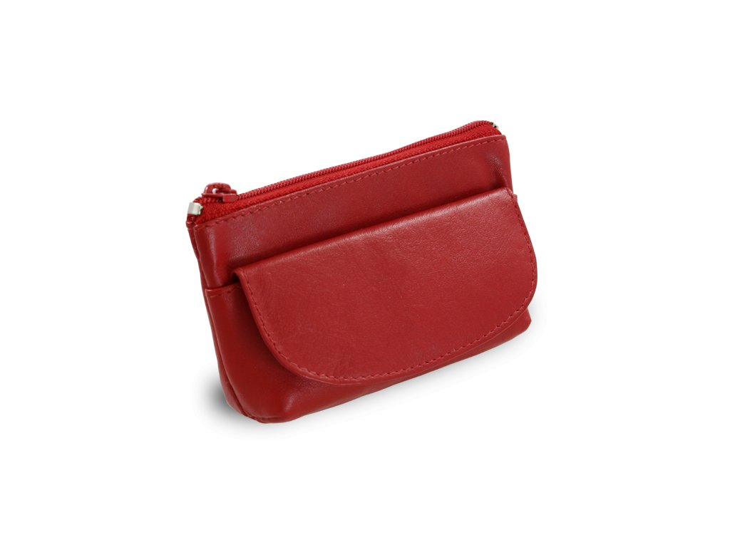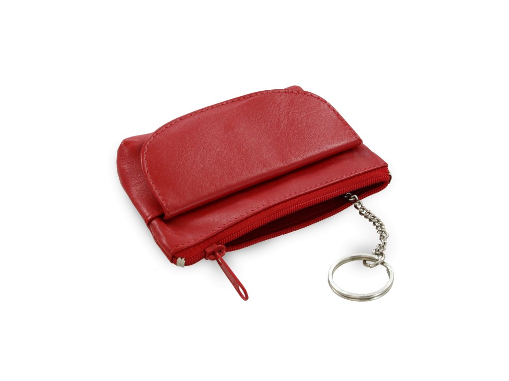 Červená kožená kľúčenka so zipsovým a poklopovým vreckom 619-0369-31
