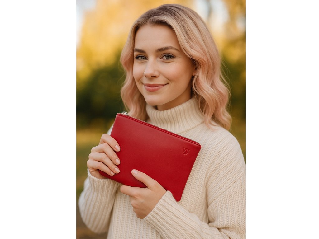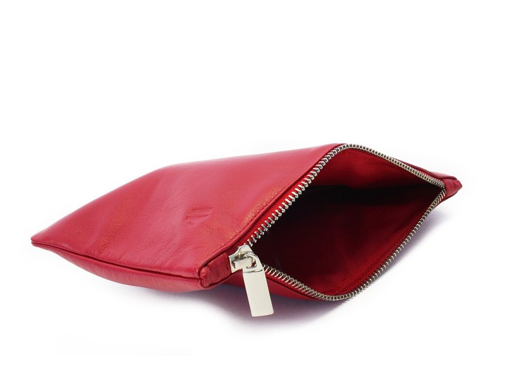Dámska kožená kozmetická etue obsahuje jednu veľkú priehradku na zips. Vnútri sa nachádza podšívka.