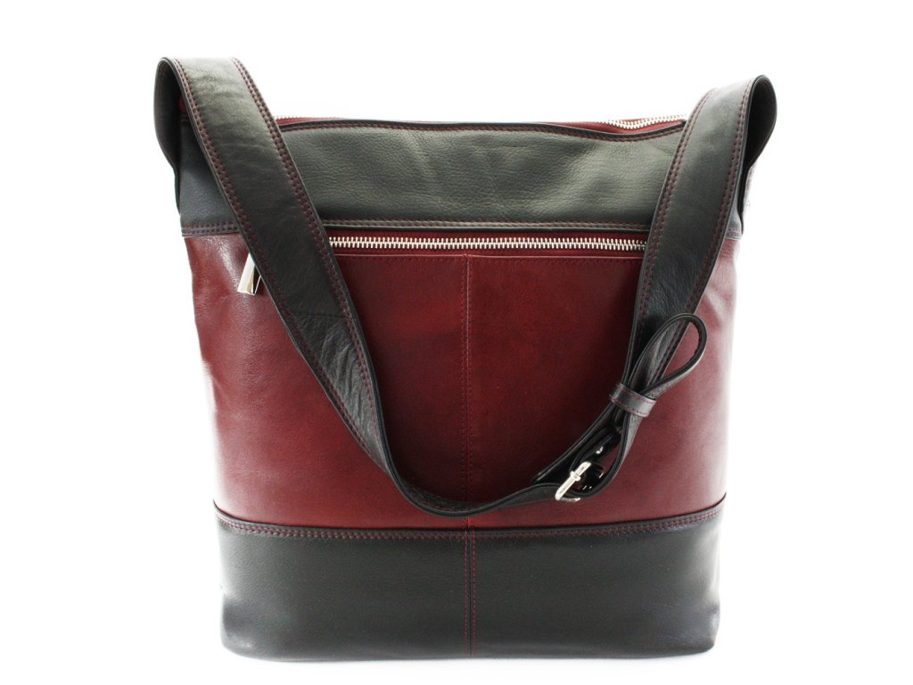 Červeno-čierna dámska kožená kabelka 212-6933-31/60