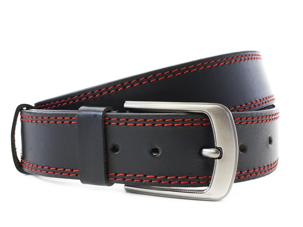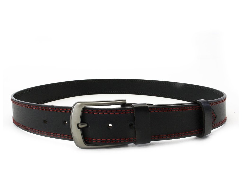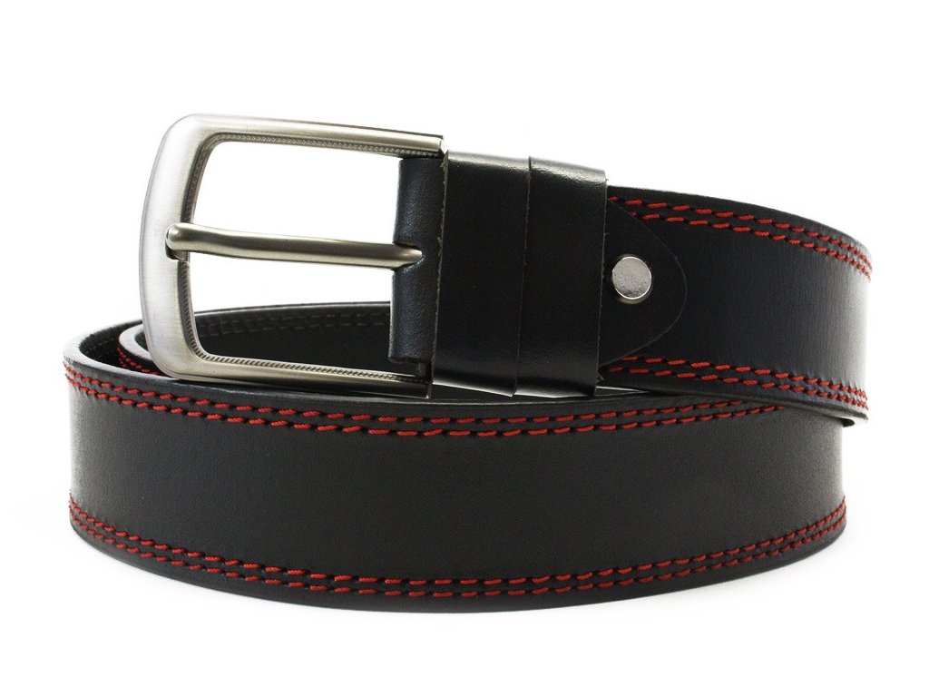 Červenočierny kožený pánsky opasok s dvojitým šitím 913-5003-2-60/31-9006-40