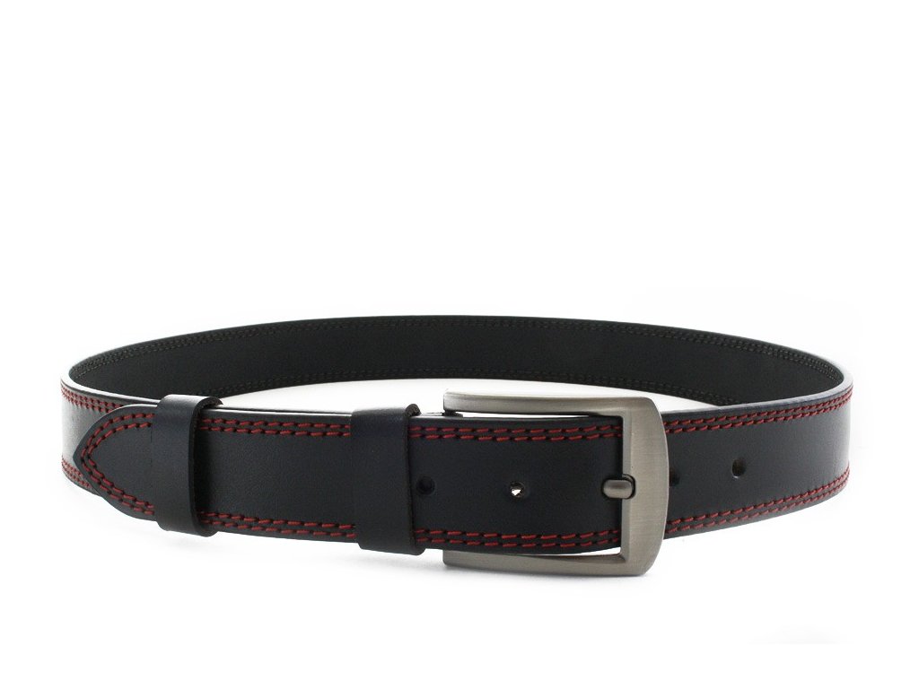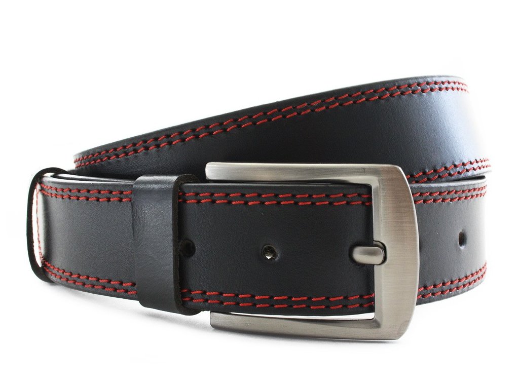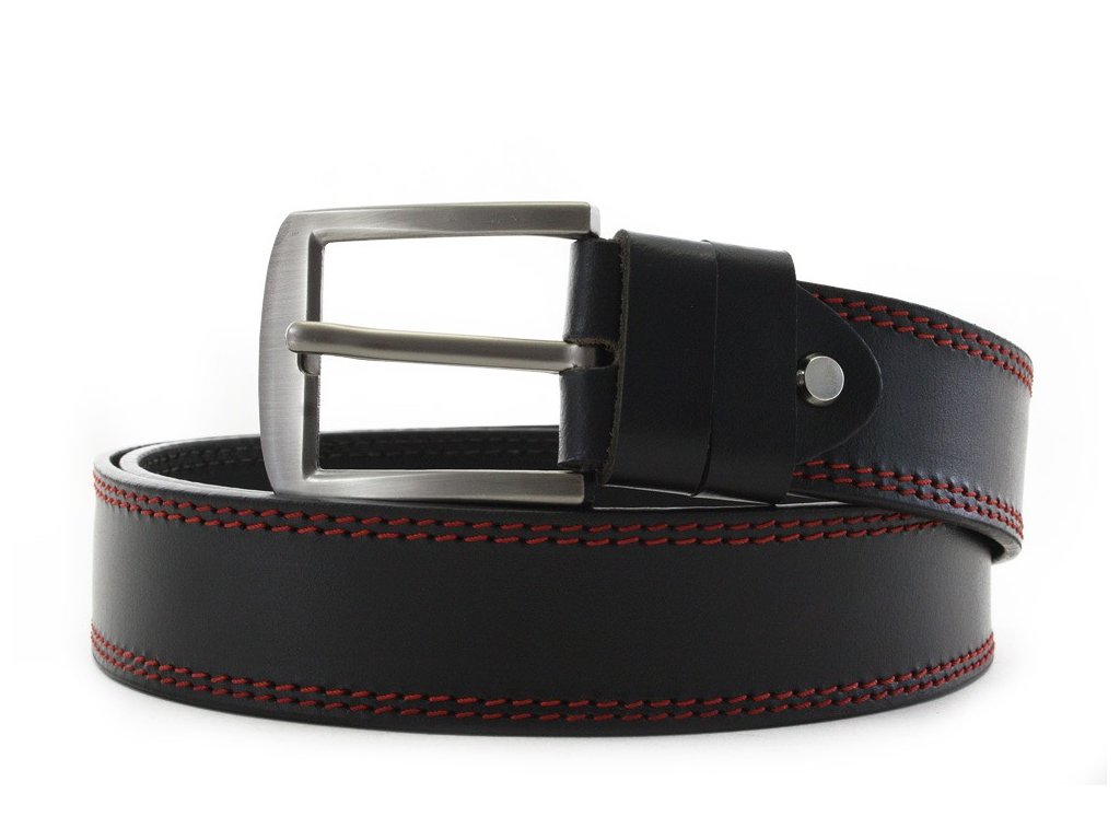 Červenočierny kožený pánsky opasok s dvojitým šitím 913-5003-2-60/31-9011-40