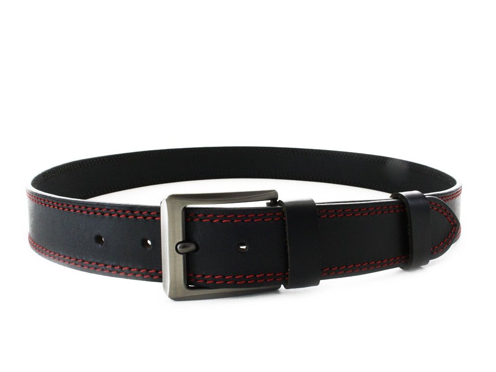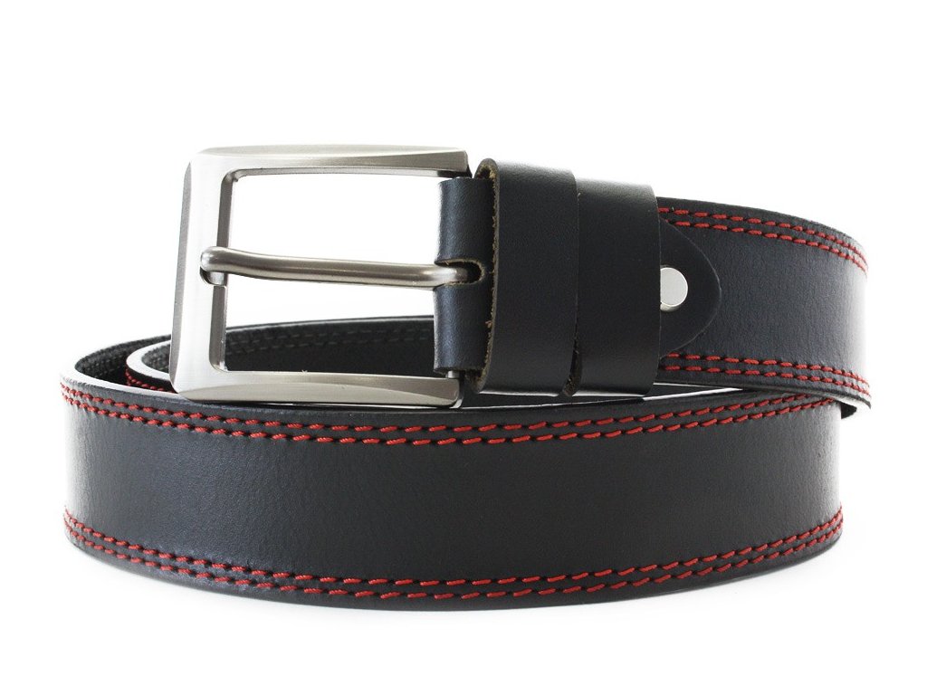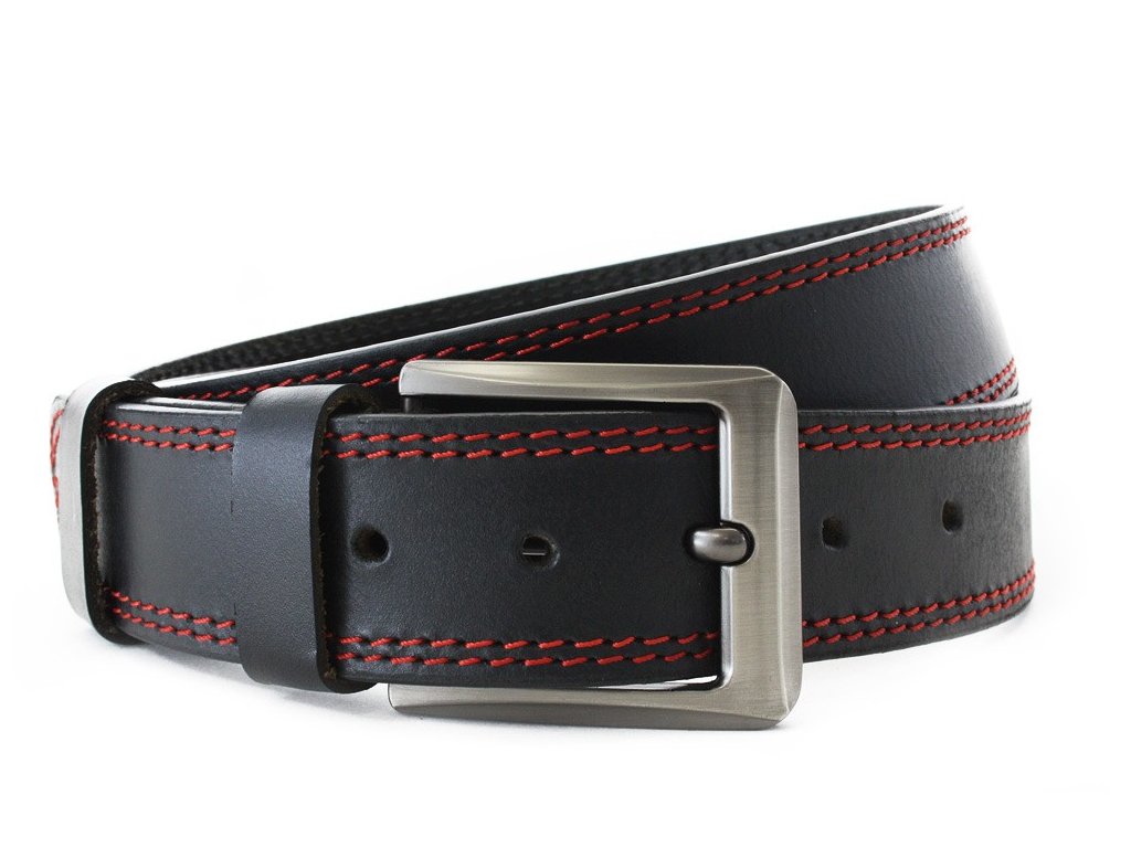 Červenočierny kožený pánsky opasok s dvojitým šitím 913-5003-2-60/31-9013-40