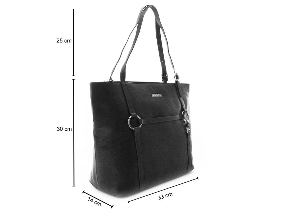 Luxusná dámska kabelka má hlavné priestranné vrecko kryté zipsom. Vnútri sa nachádza 2 otvorené a 1 zipsové vrecko. Výška popruhu cez rameno je 25 cm.