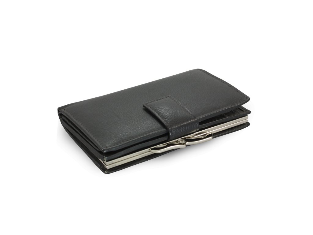 Čierna dámska kožená rámová peňaženka so zápinkou 511-6232-60