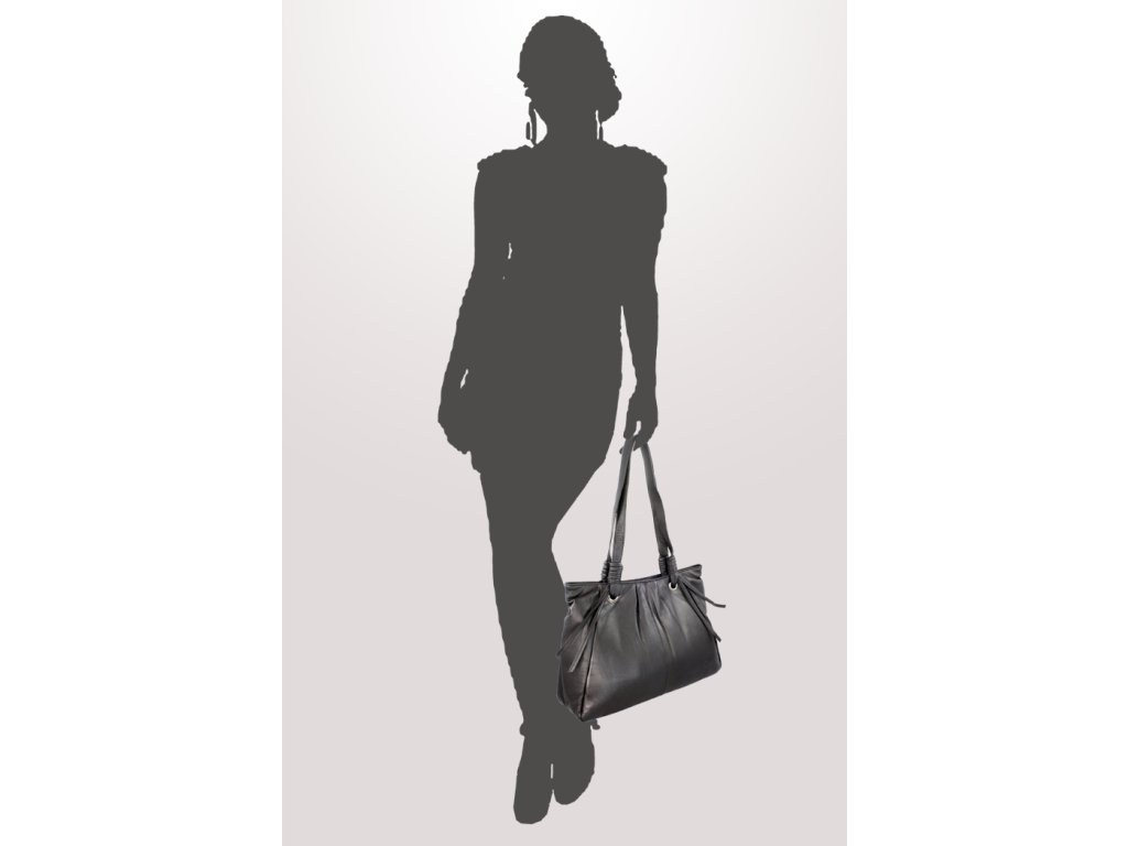 1 hlavné zipsové vrecko rozdelené látkovou zipsovou prepážkou, vnútorné zipsové vrecko, vrecko na mobil, odopínateľný krúžok na kľúče a malé zrkadlo v koženom obale. Výška popruhu 30 cm.