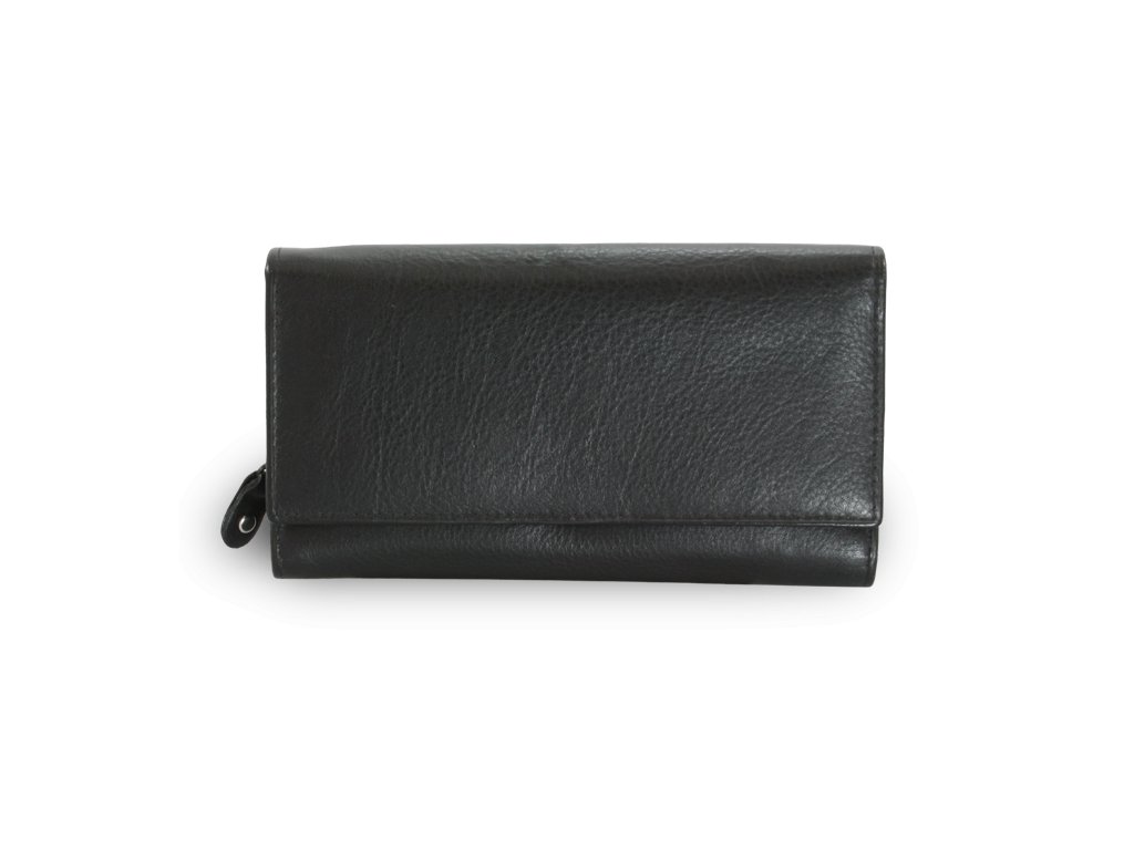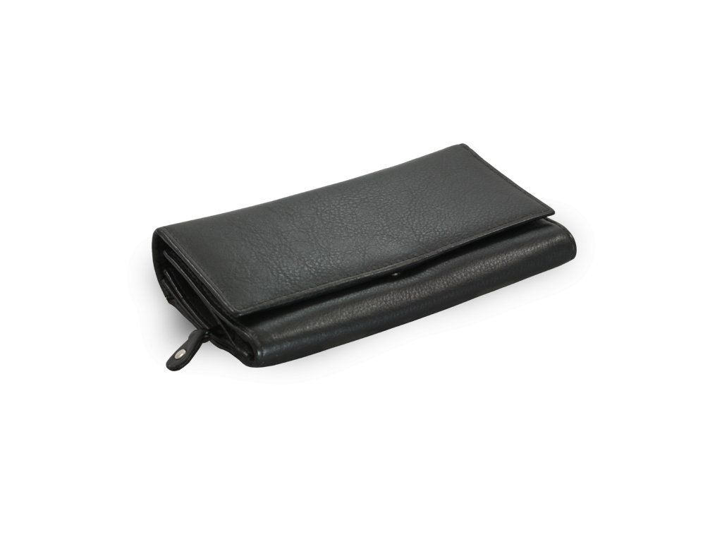 Čierna dámska listová kožená peňaženka s poklopom 511-2120-60