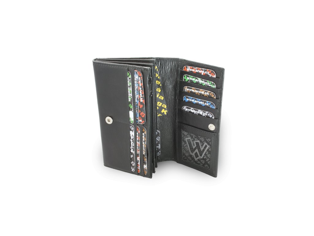 Čierna dámska listová kožená peňaženka s poklopom 511-4233-60