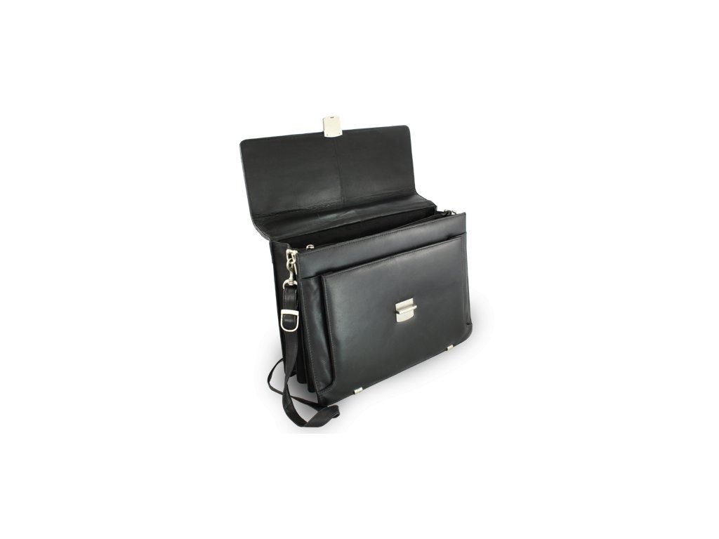 Čierna kožená aktovka so štyrmi vnútornými priehradkami 112-6002-60