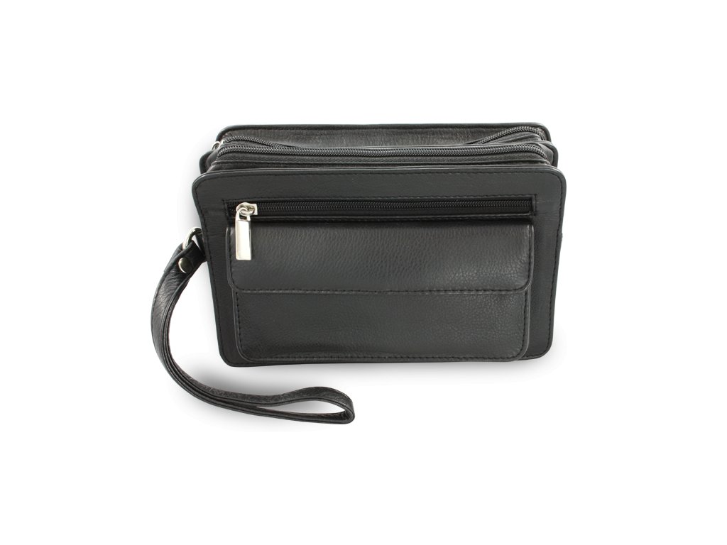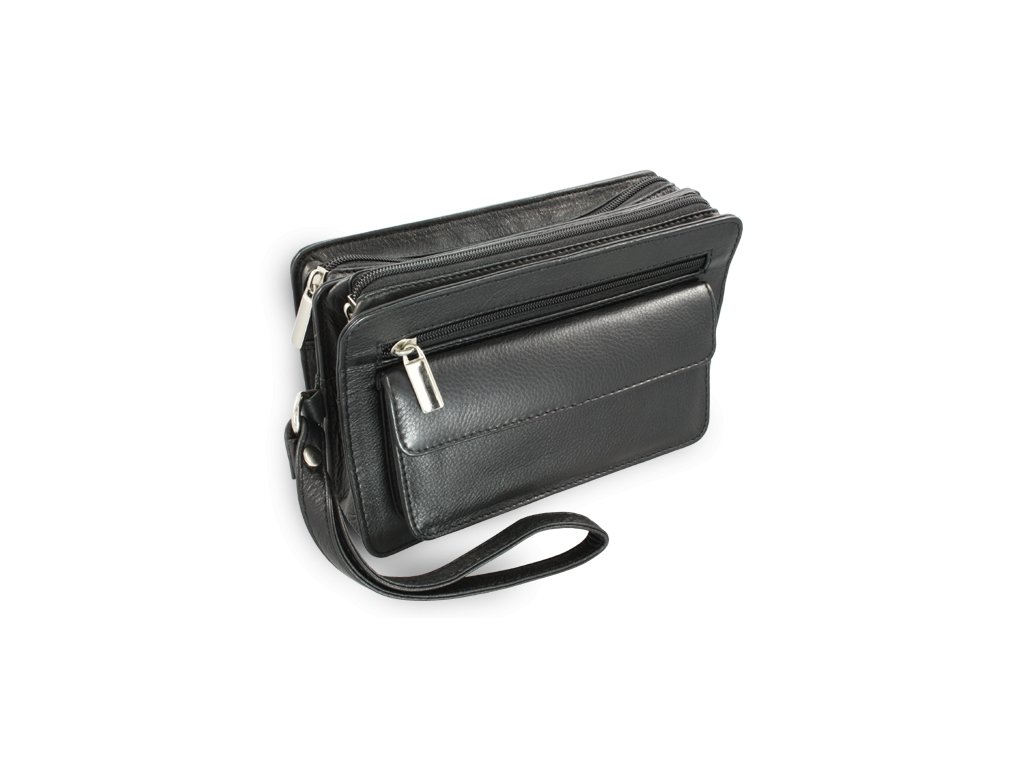 Čierna kožená dvojzipsová etue 611-1080-60