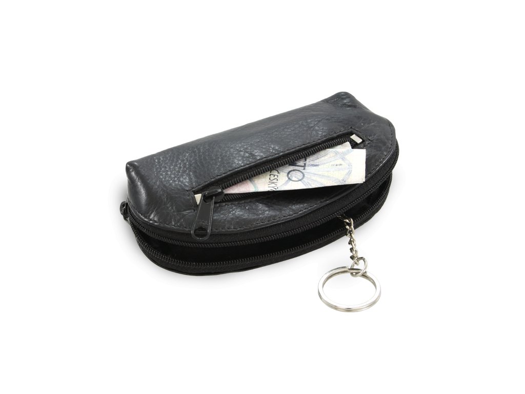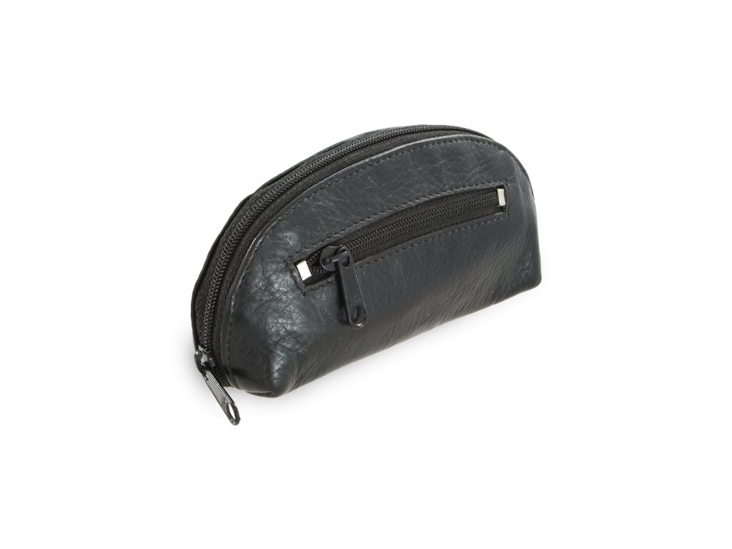 Čierna kožená dvojzipsová kľúčenka 619-0367-60