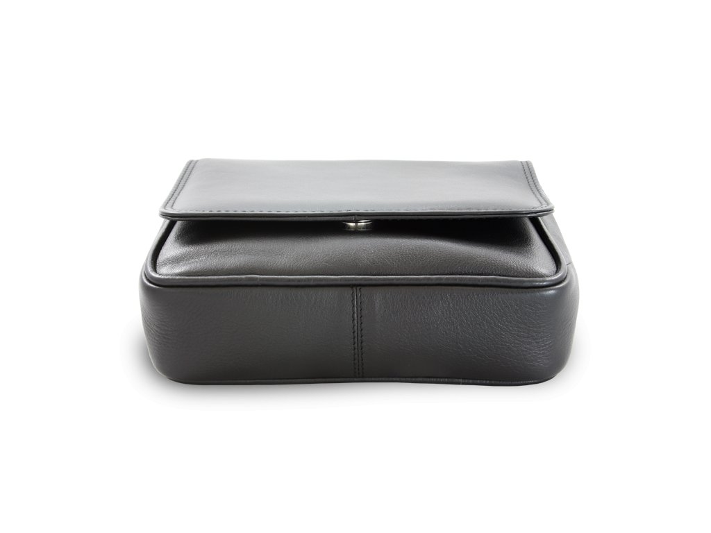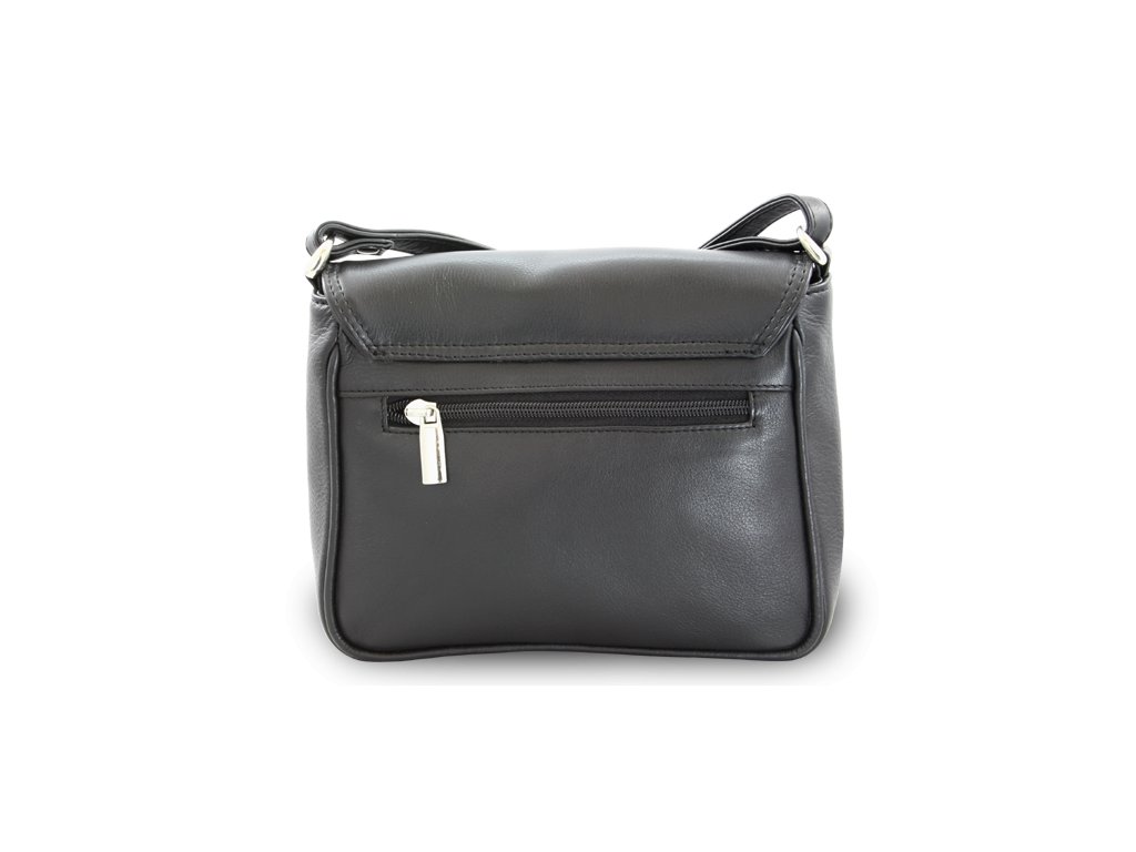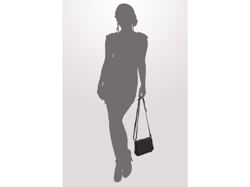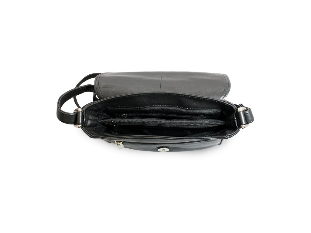 2 vnútorné separácie rozdelené zipsovým vreckom, malé zipsové vrecko vo vnútri, zipsové vrecko pod poklopom a na zadnej strane kabelky, malé zrkadlo v koženom obale, magnetický kaštieľ, nastaviteľný popruh.