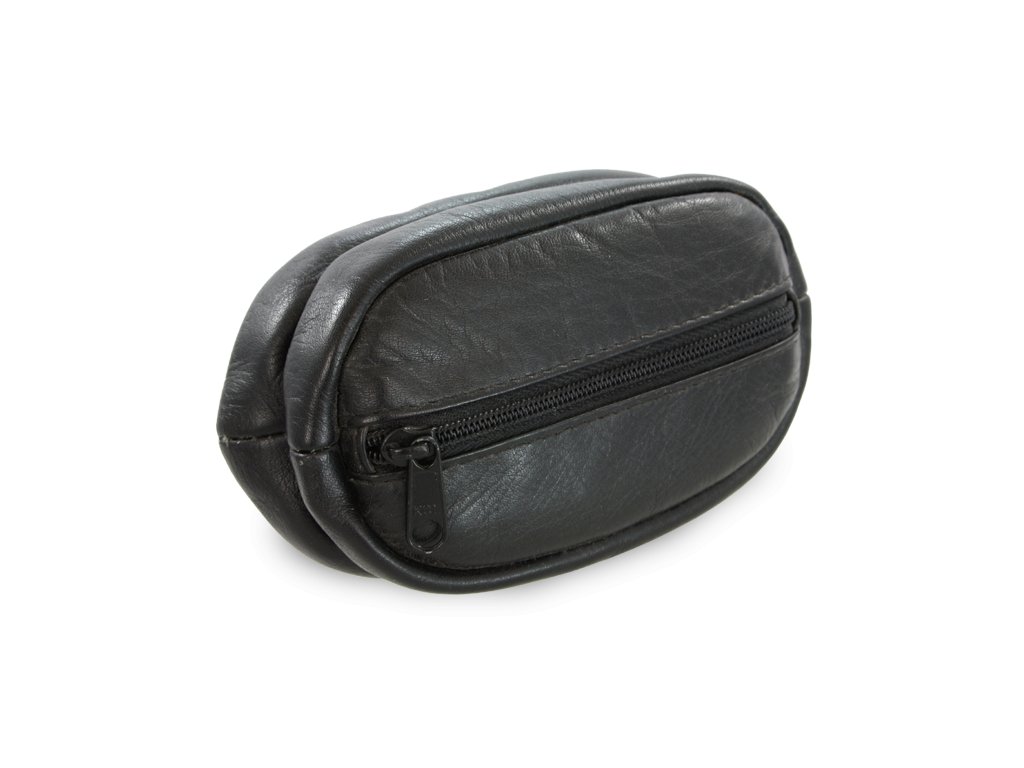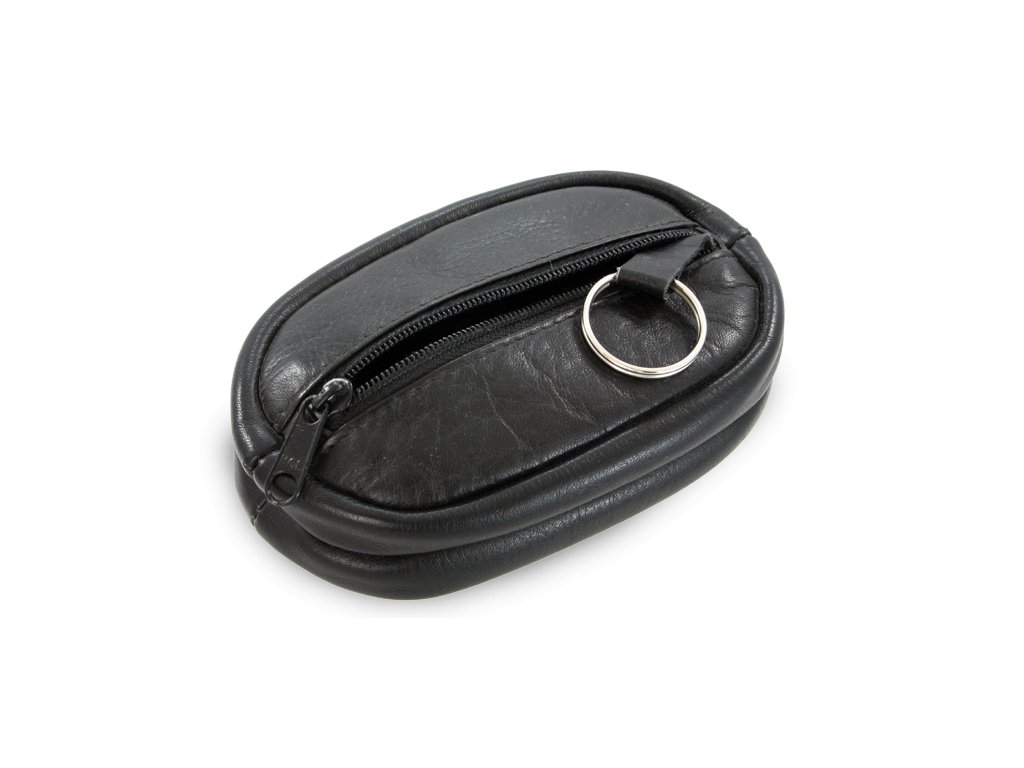 Čierna kožená kľúčenka s dvoma veľkými zipsovými vreckami 619-0375-60