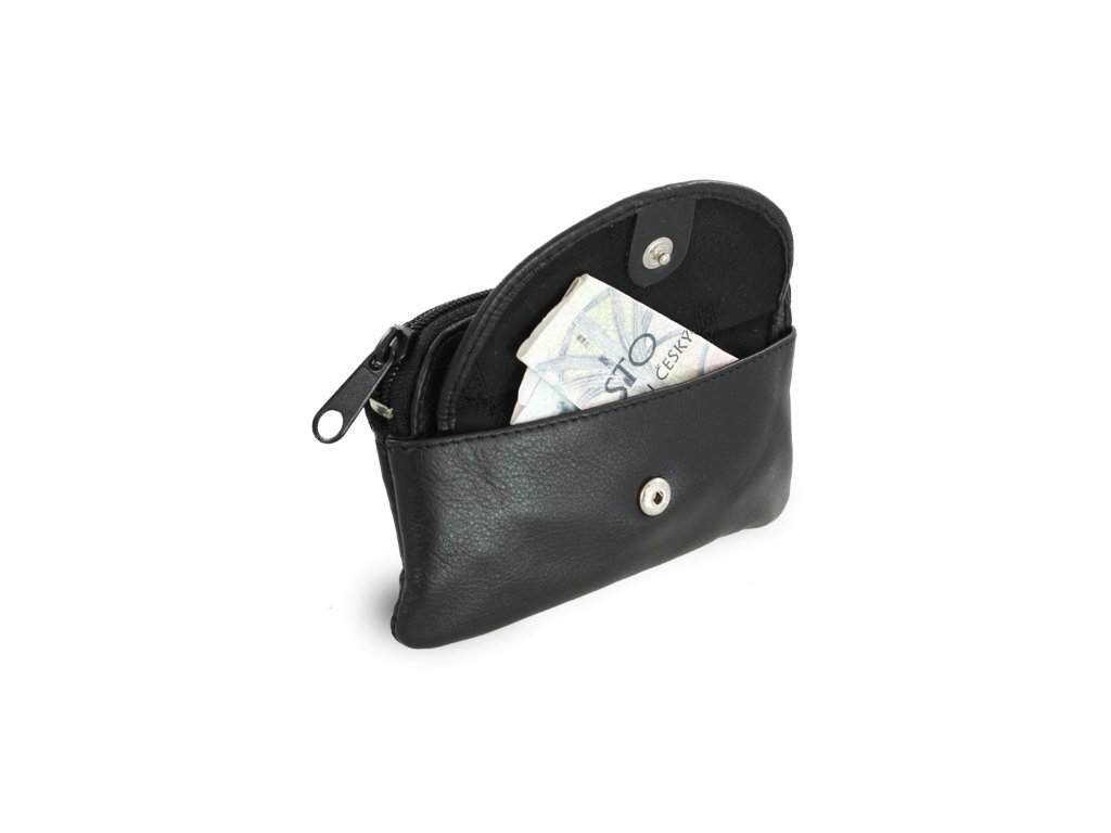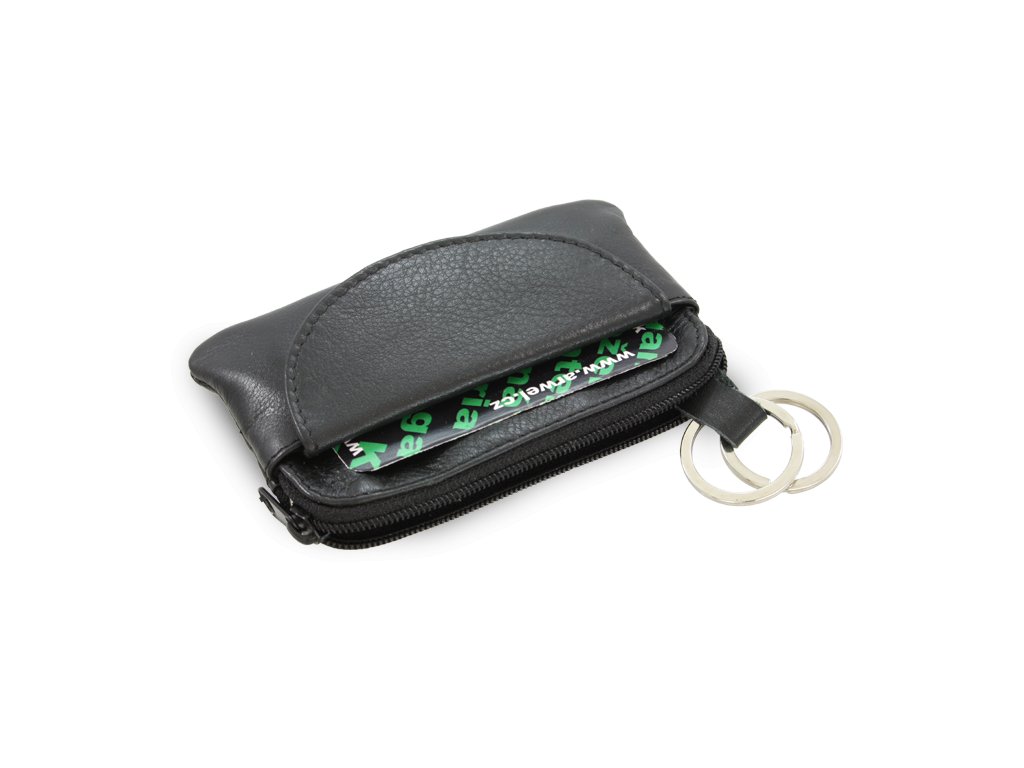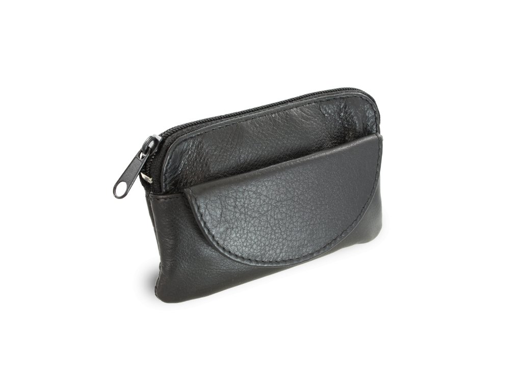 Čierna kožená kľúčenka so zipsovým a poklopovým vreckom