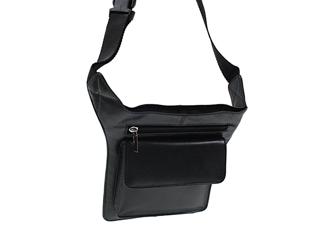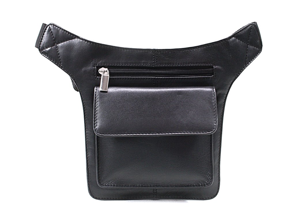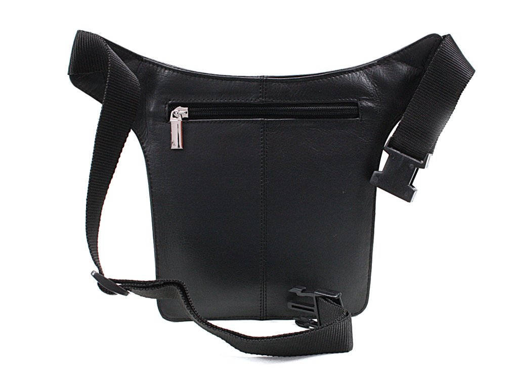 Moderná ľadvinka má netradičný štvorcový tvar a 1 hlavné vrecko uzatvárateľné na suchý zips. Na prednej strane je zipsové vrecko a menšie poklopové vrecko. Na zadnej strane je skryté zipsové vrecko. Zipsy sú v čiernej farbe so strieborným kovaním. Šitie je čierne. Popruh v čiernej farbe je nastaviteľný do cca 85 cm, celková dĺžka aj s ľadvinkou je cca 115 cm. Možnosť nosenia okolo pása alebo cez rameno.