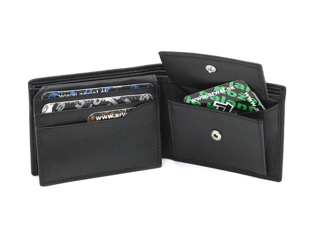 2 priehradky na zložené bankovky (pozdĺžne), vrecko na mince, 4 vrecká na kreditné karty, 1 vnútorné a 1 priehľadné vrecko.