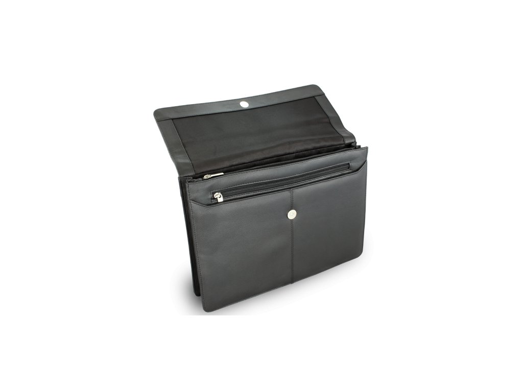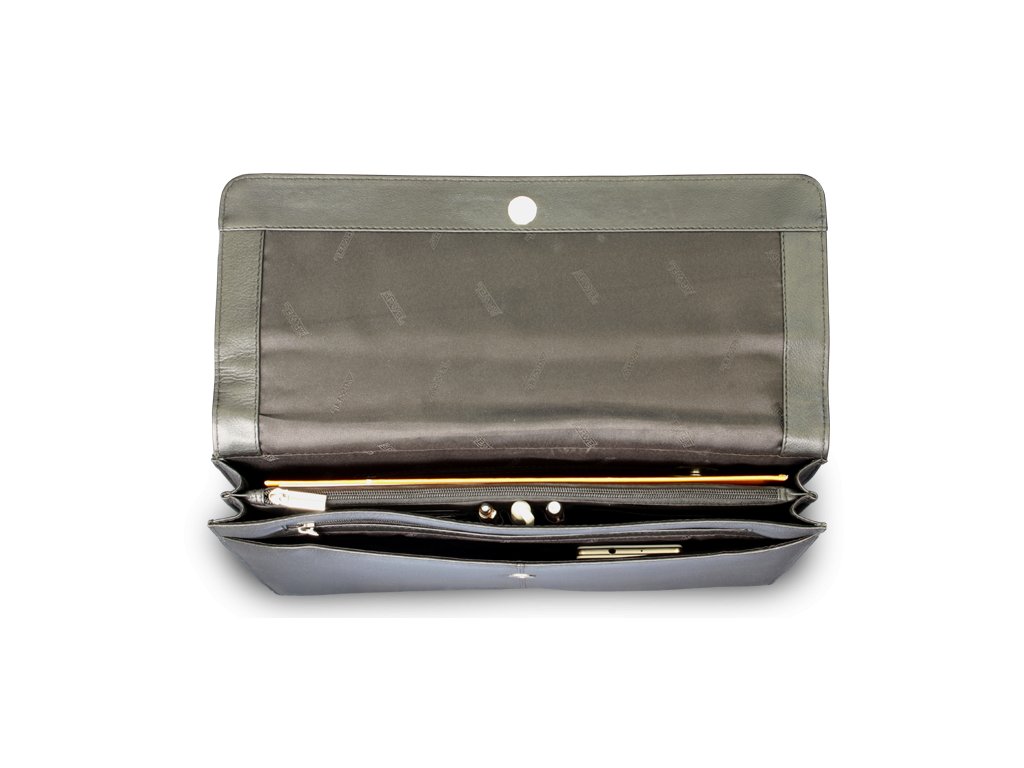 2 separácie oddelené zipsovým vreckom, 2 zipsové a 1 vnútorné vrecko, odopínateľný krúžok na kľúče, vnútorné vrecká pre kalkulačku, karty a písacie potreby, vonkajšie zipsové vrecko.