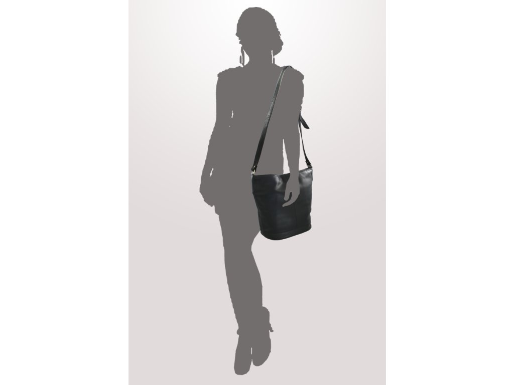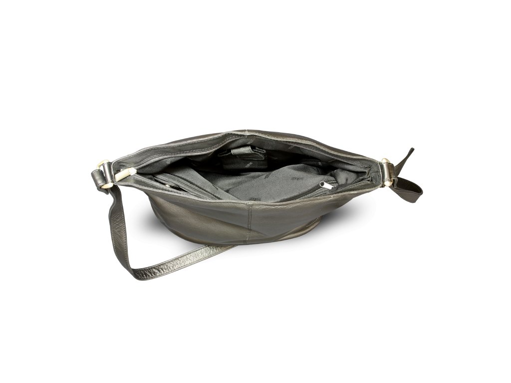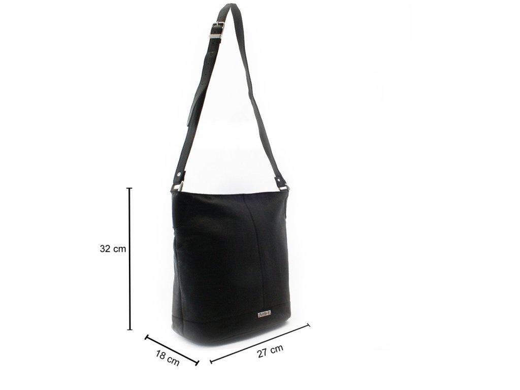 Oválne dno, 2 vnútorné separácie rozdelené zipsovým vreckom, zipsové vrecko, vrecko na mobil, odopínateľný krúžok na kľúče a malé zrkadlo v koženom obale. Vhodná pre A4. Dĺžka popruhu 98 cm.