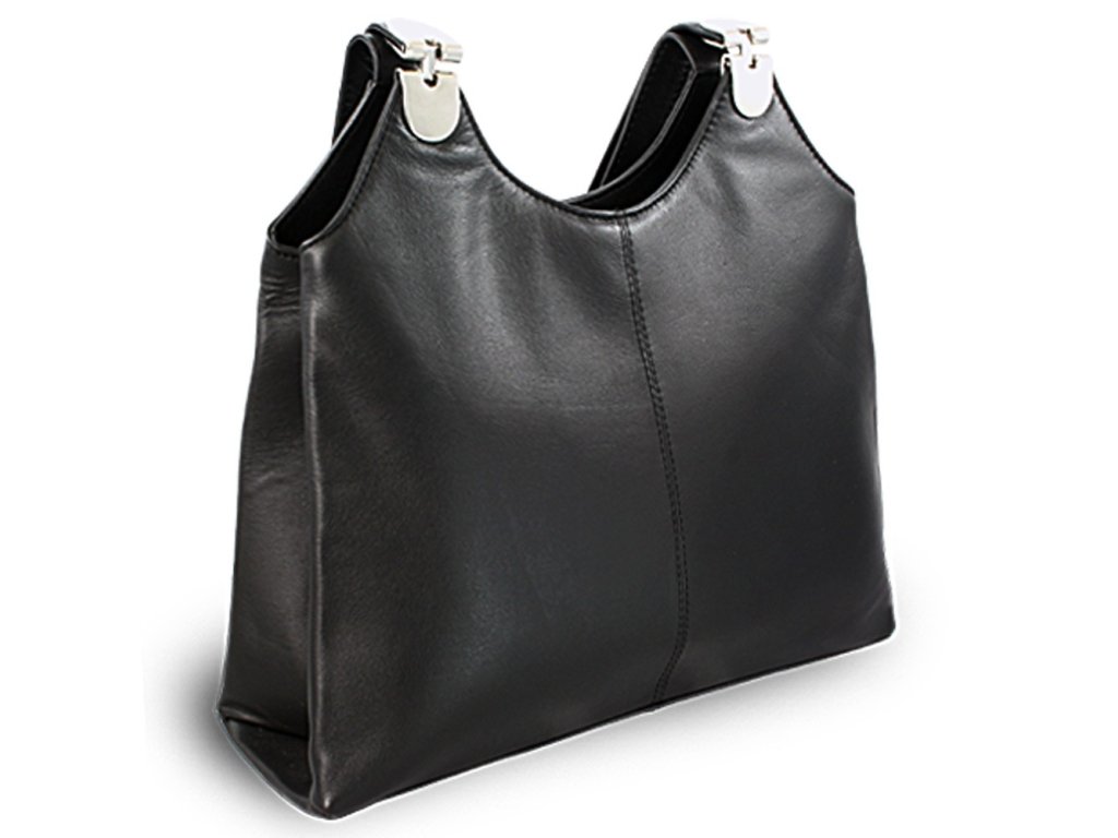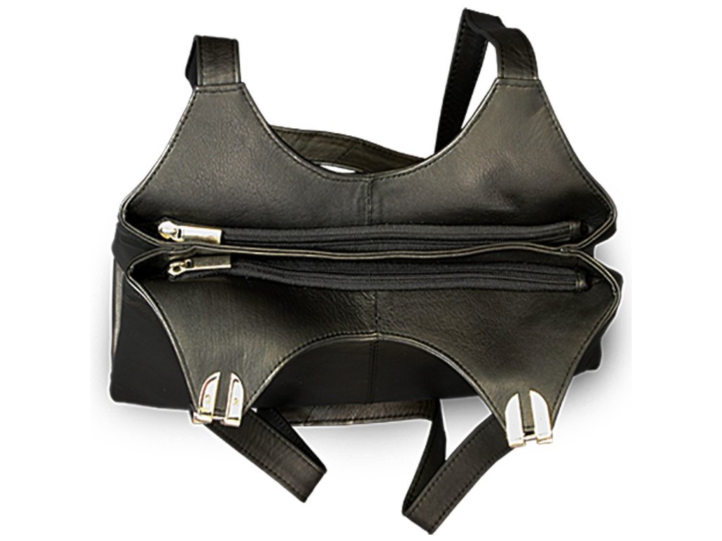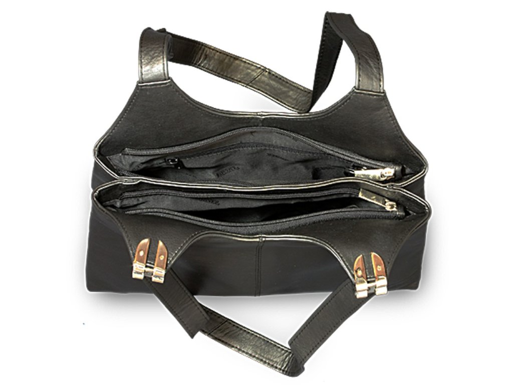 Čierna kožená zipsová kabelka s dvoma popruhmi 212-8013-60