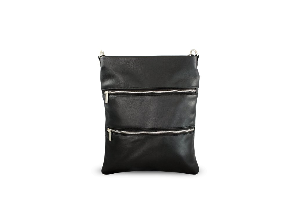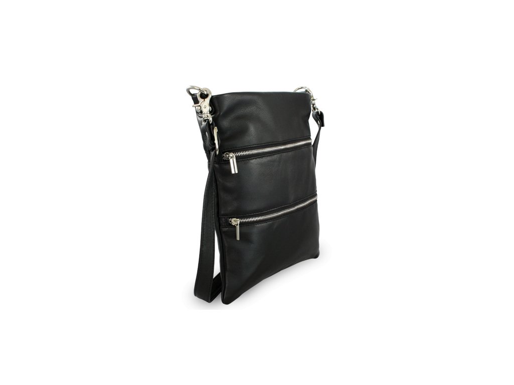 Čierna kožená zipsová kabelka s popruhom 212-3066-60
