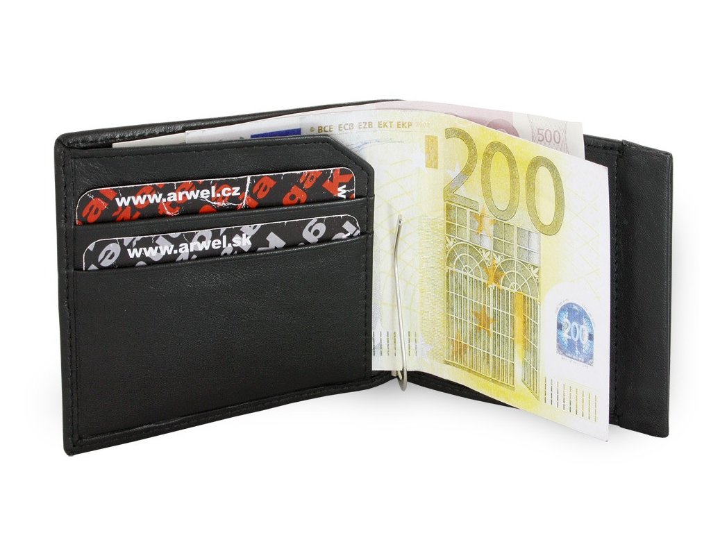 Pružina na držanie bankoviek, 2 vrecká na kreditné karty a 1 vnútorné vrecko.