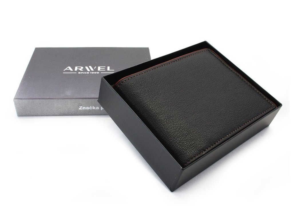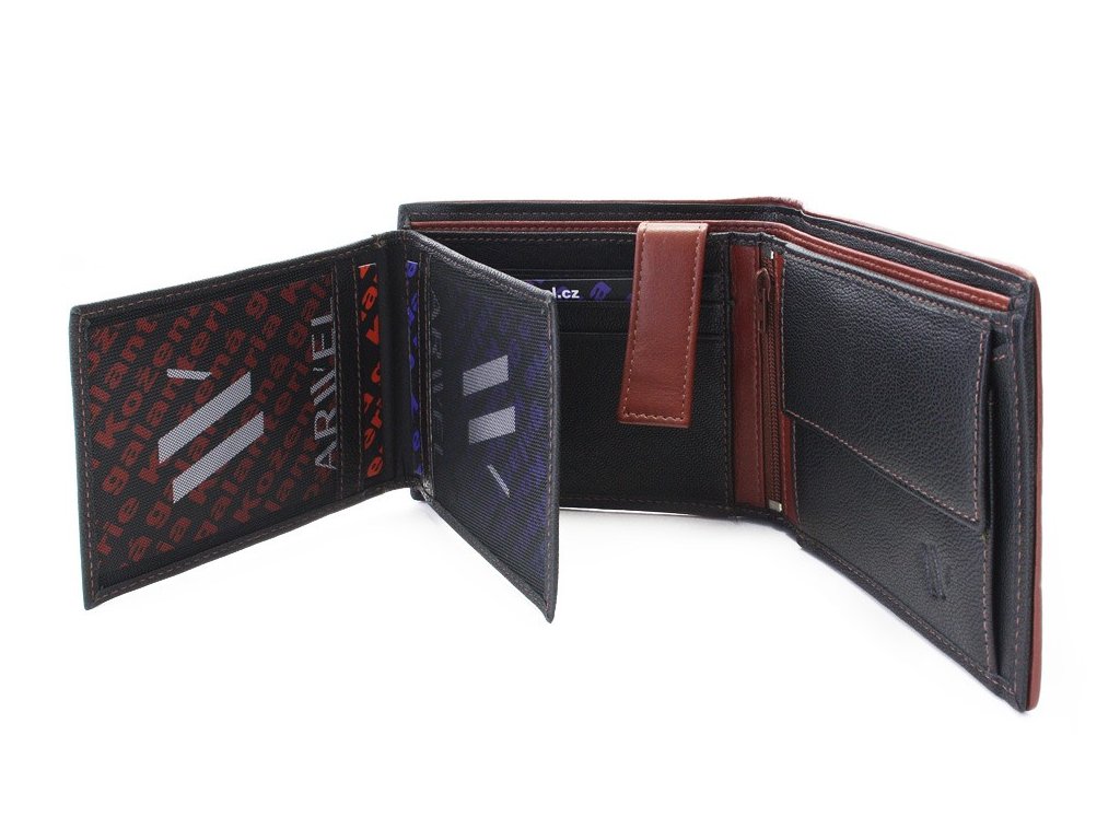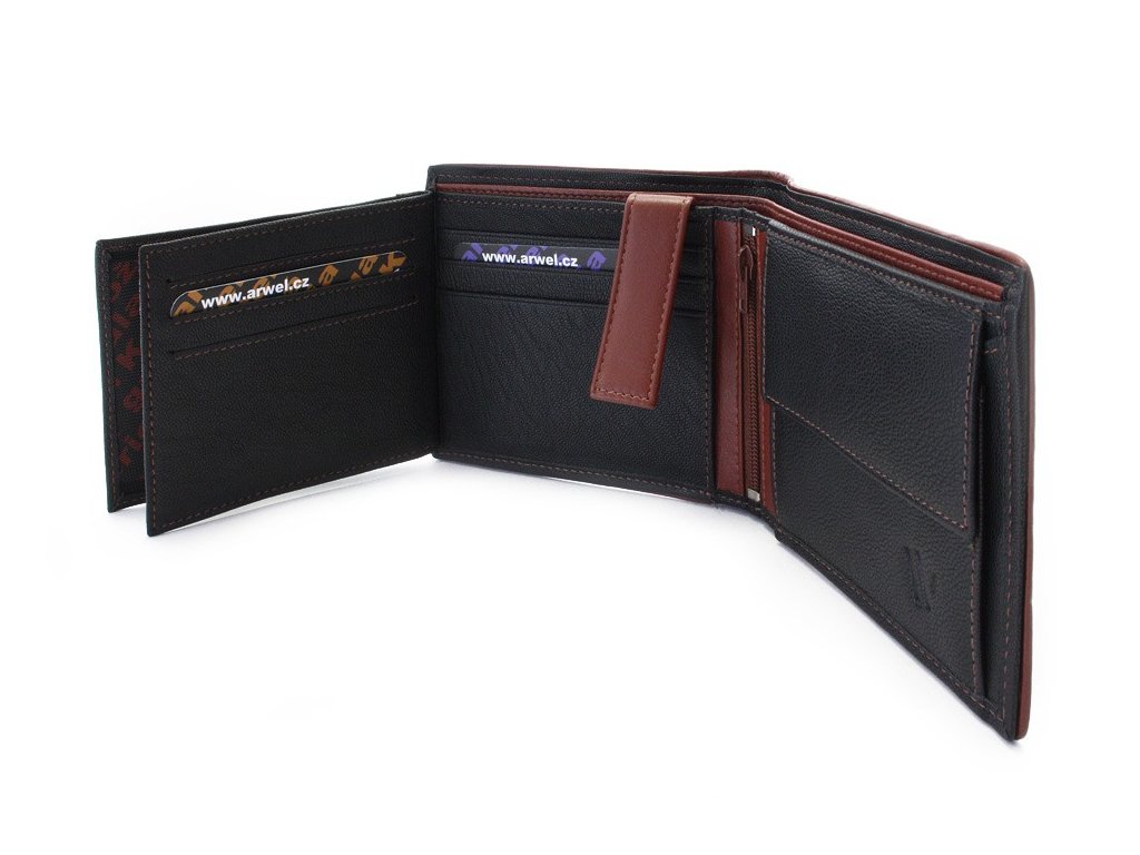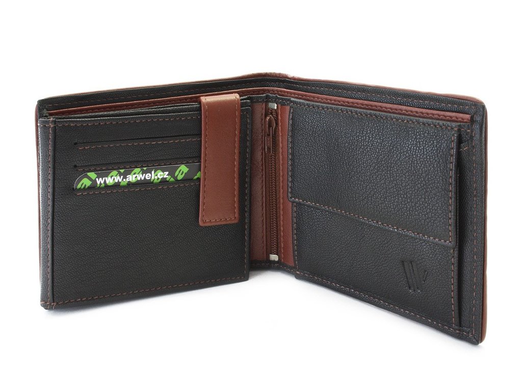 Čierna pánska kožená peňaženka s hnedou zápinkou 513-8142-60/44