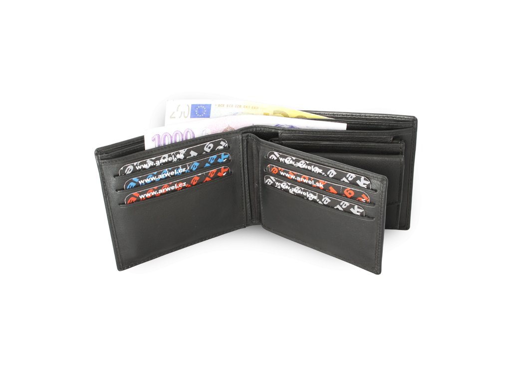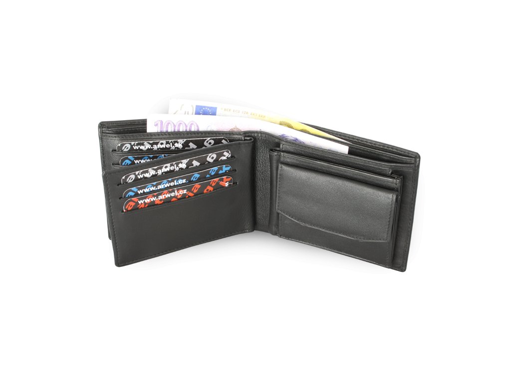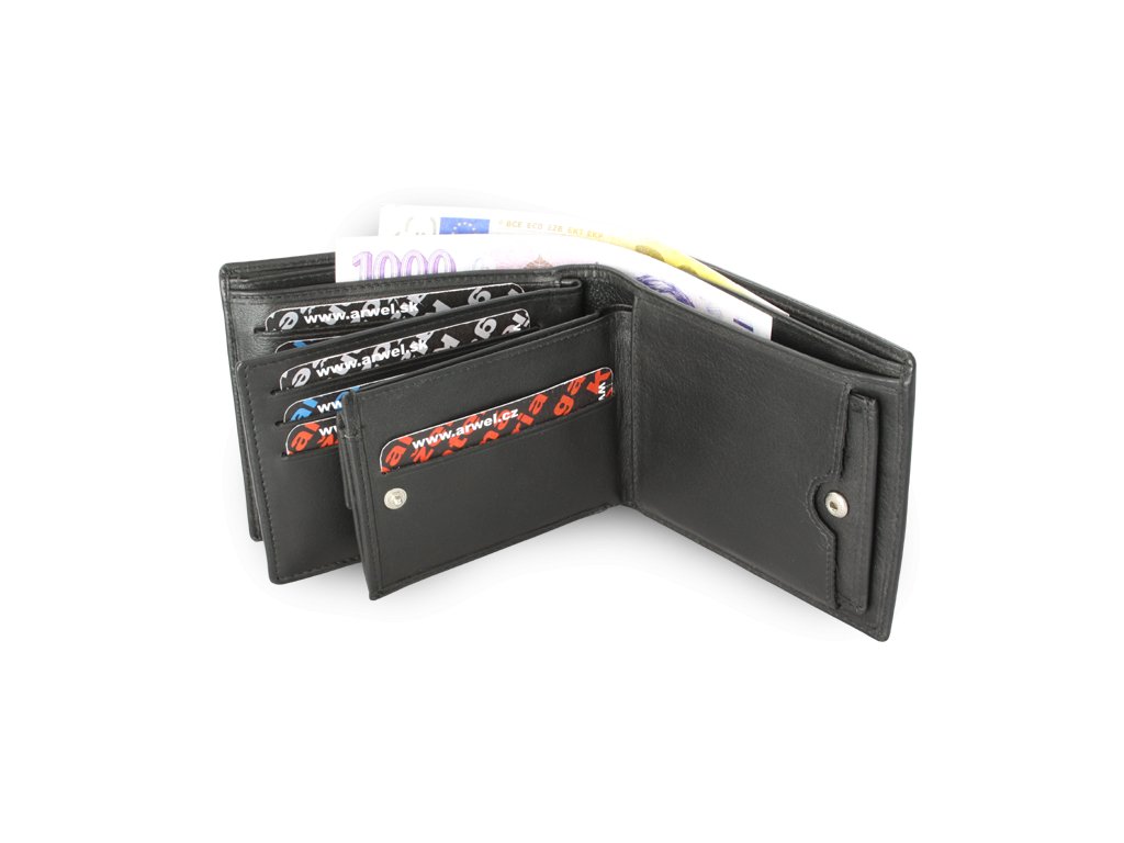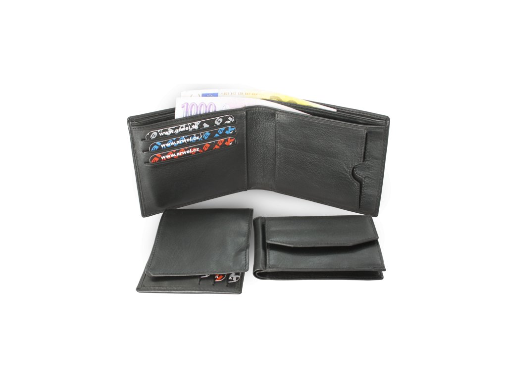 Bohato vybavená peňaženka tzv. 3 v 1 s odnímateľnou menšou peňaženkou a oddeliteľnou dokladovkou. Základná peňaženka obsahuje 2 priehradky na bankovky, 3 vrecká na kreditné karty, vrecko na dokladovku a úchyt pre menšiu peňaženku, ktorá obsahuje priehradku na bankovky, vrecko na mince a 2 vrecká na kreditné karty. Dokladovka obsahuje 2 vrecká na doklady a 6 vreciek na kreditné karty.