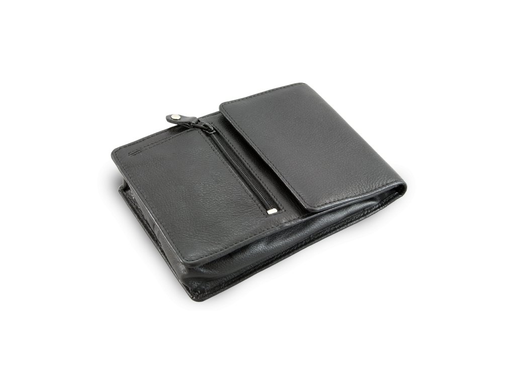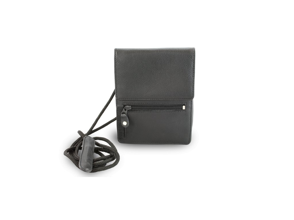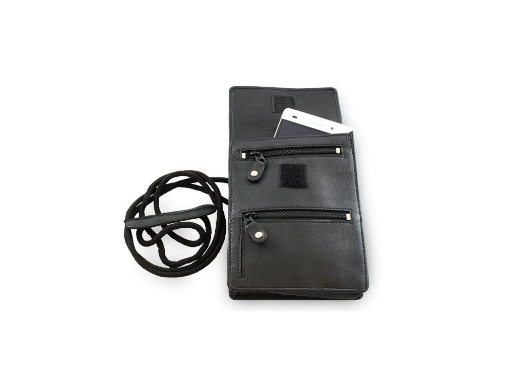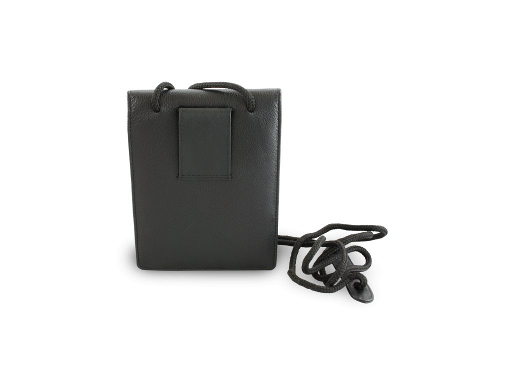 Čierne kožené puzdro na doklady s popruhom 611-6108-60