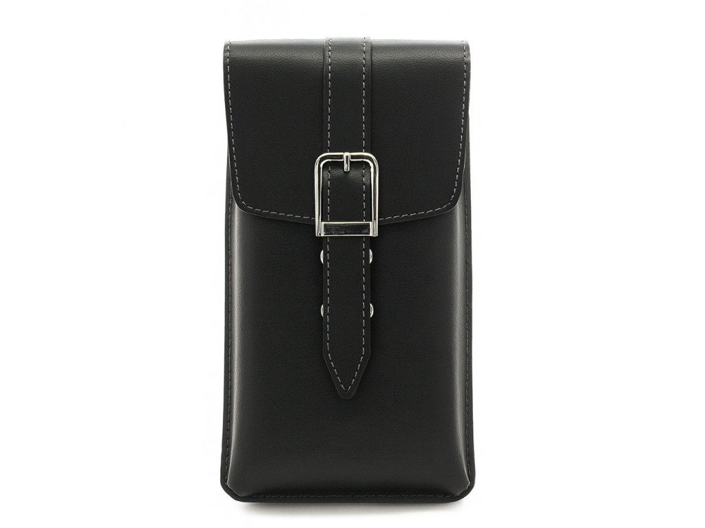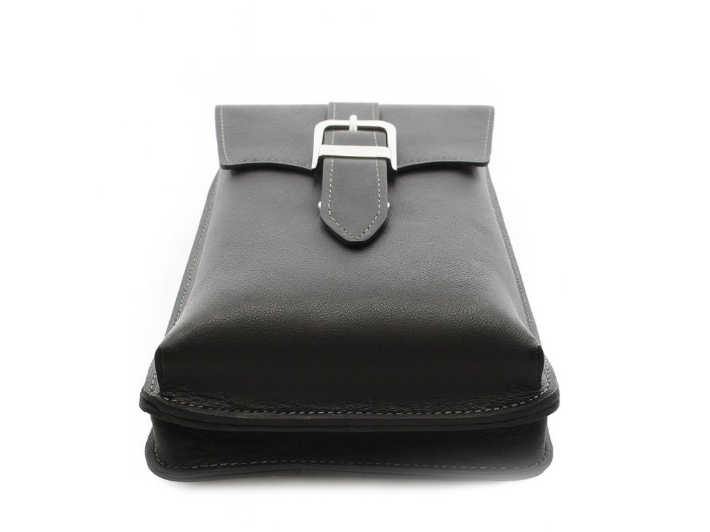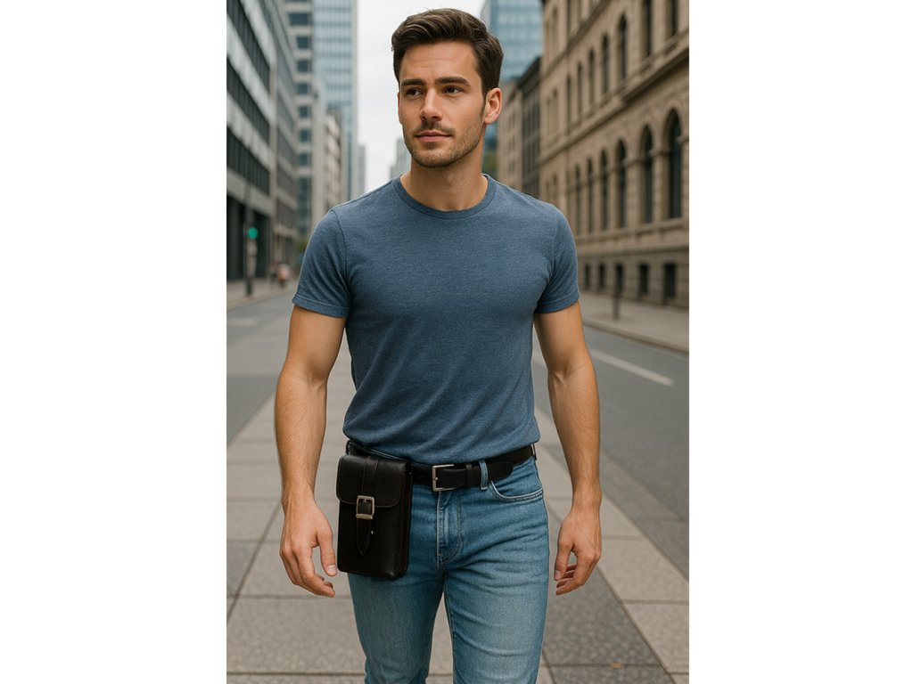Pánske kožené puzdro na mobil obsahuje 2 veľké vrecká chránené chlopňou so zámočkom. Na zadnej vonkajšej strane sa nachádza pútko pre možnosť umiestnenia puzdra na opasok.