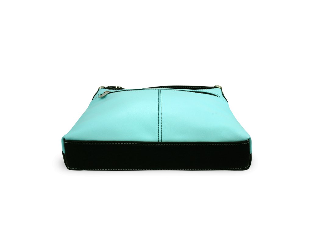 Čierno-svetlo modrá kožená zipsová kabelka 212-3014-60/91