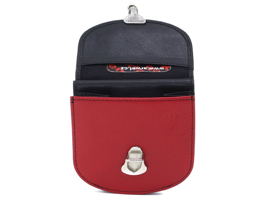 Netradičná dámska kožená peňaženka má vonkajšie vrecko na mince istenú zámočkom. Súčasťou je priehradka na bankovky, 6 vreciek na kreditné karty a 2 otvorené vrecká.