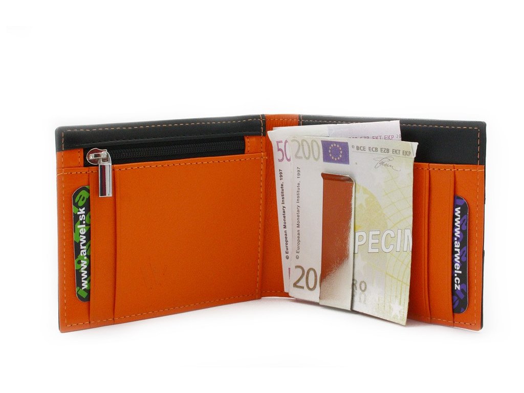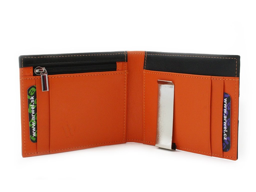 Čiernooranžová pánska kožená dolárovka s klipom 519-1811-60/84