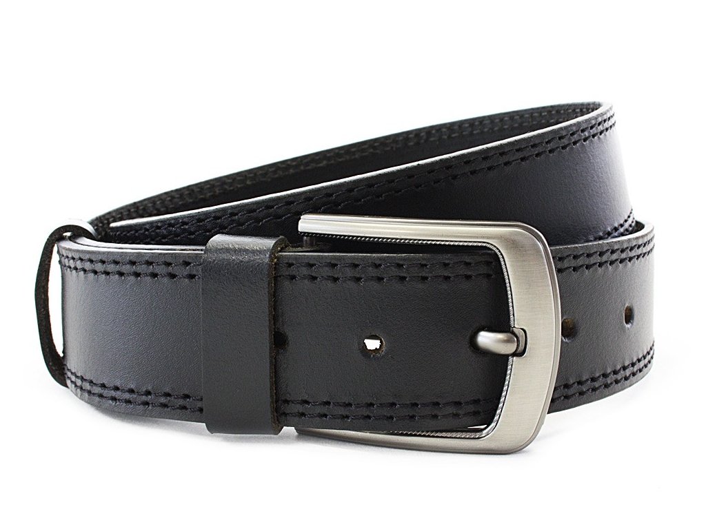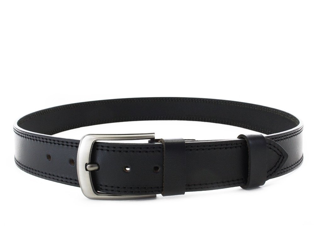 Čierny kožený pánsky opasok s dvojitým šitím 913-5002-2-60/60-9006-40