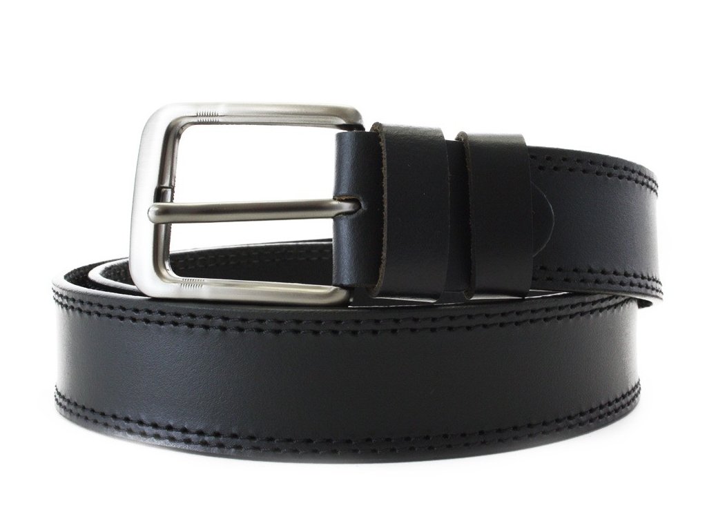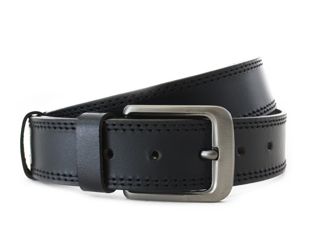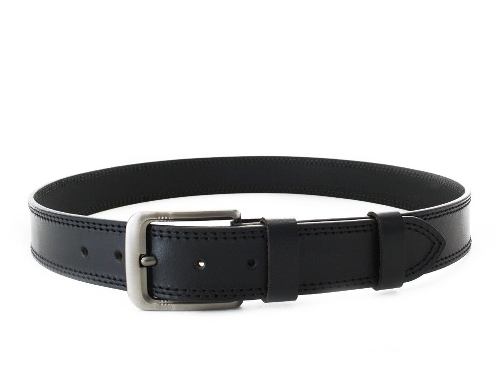 Čierny kožený pánsky opasok s dvojitým šitím 913-5002-2-60/60-9007-40