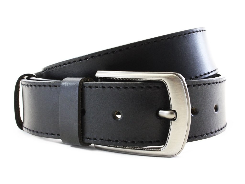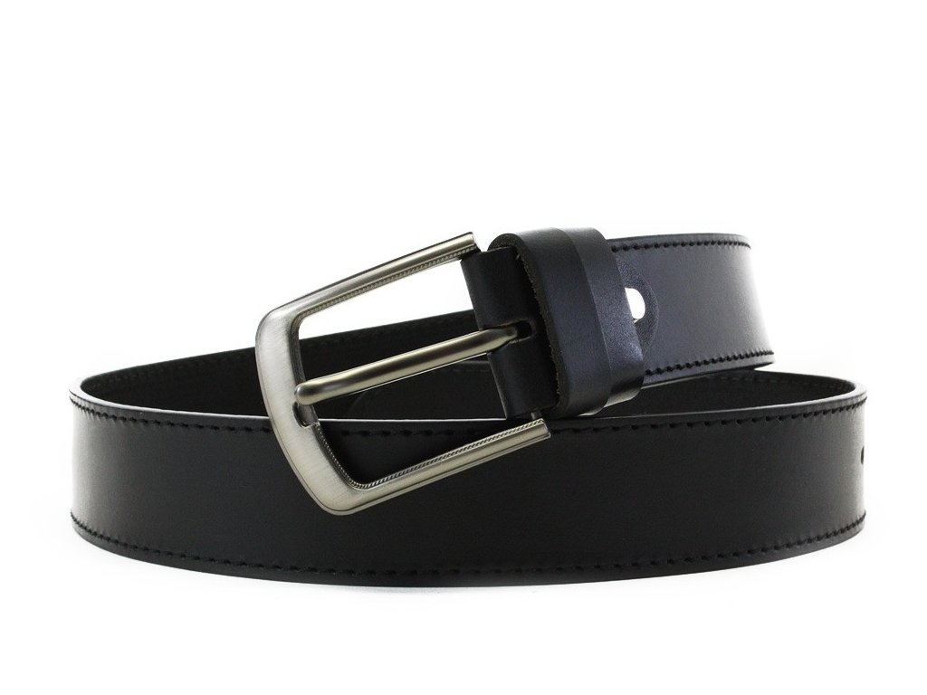 Čierny prešívaný kožený pánsky opasok 913-5001-1-60/60-9006-40