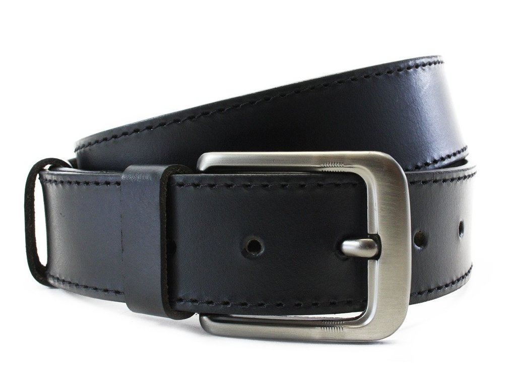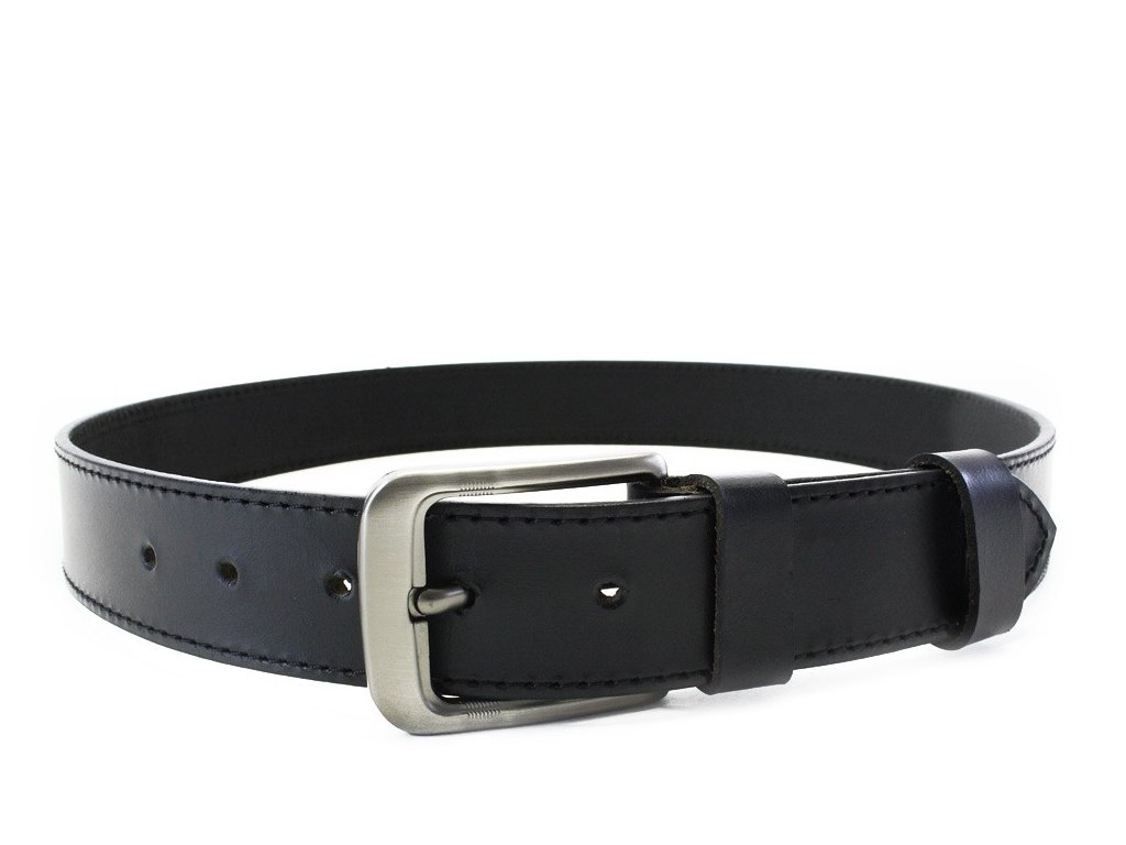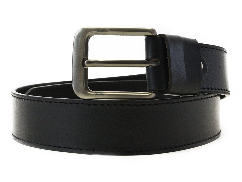 Čierny prešívaný kožený pánsky opasok 913-5001-1-60/60-9007-40