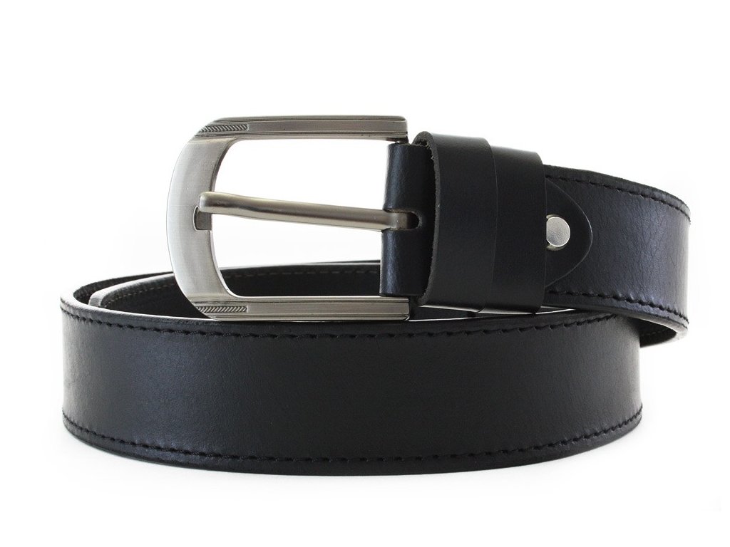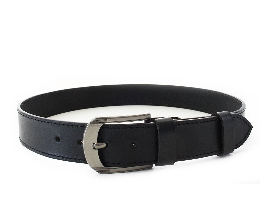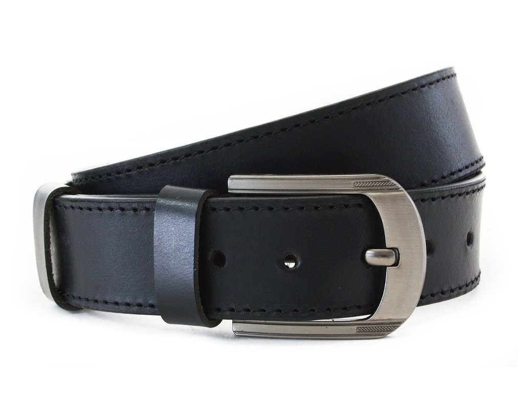Čierny prešívaný kožený pánsky opasok 913-5001-1-60/60-9008-40