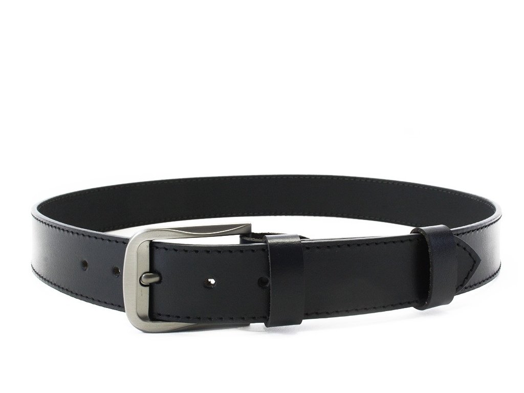 Čierny prešívaný kožený pánsky opasok 913-5001-1-60/60-9009-40