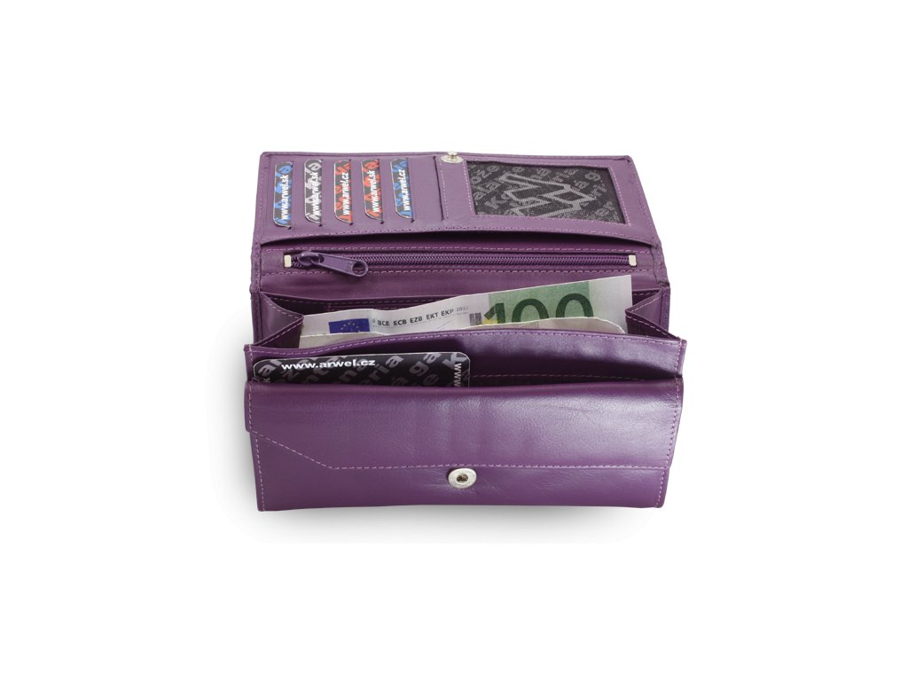 Fialová dámska kožená listová peňaženka s poklopom 511-4027-76