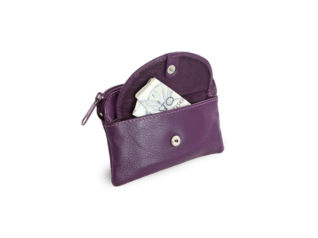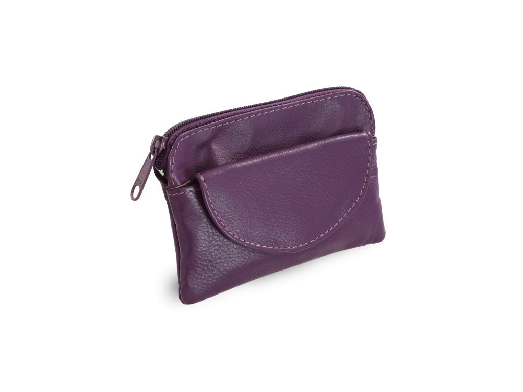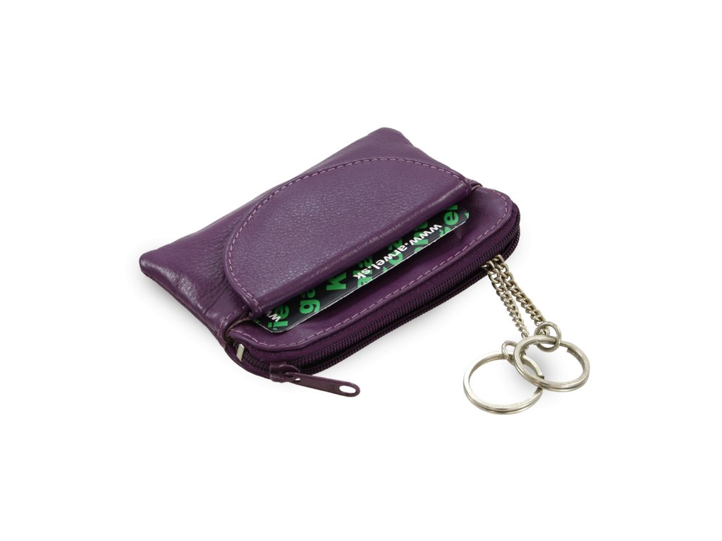 Fialová kožená kľúčenka so zipsovým a poklopovým vreckom 619-0365-76