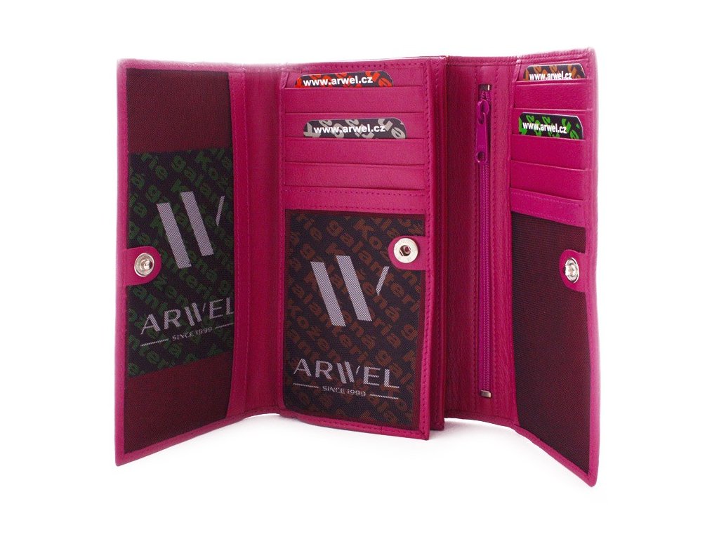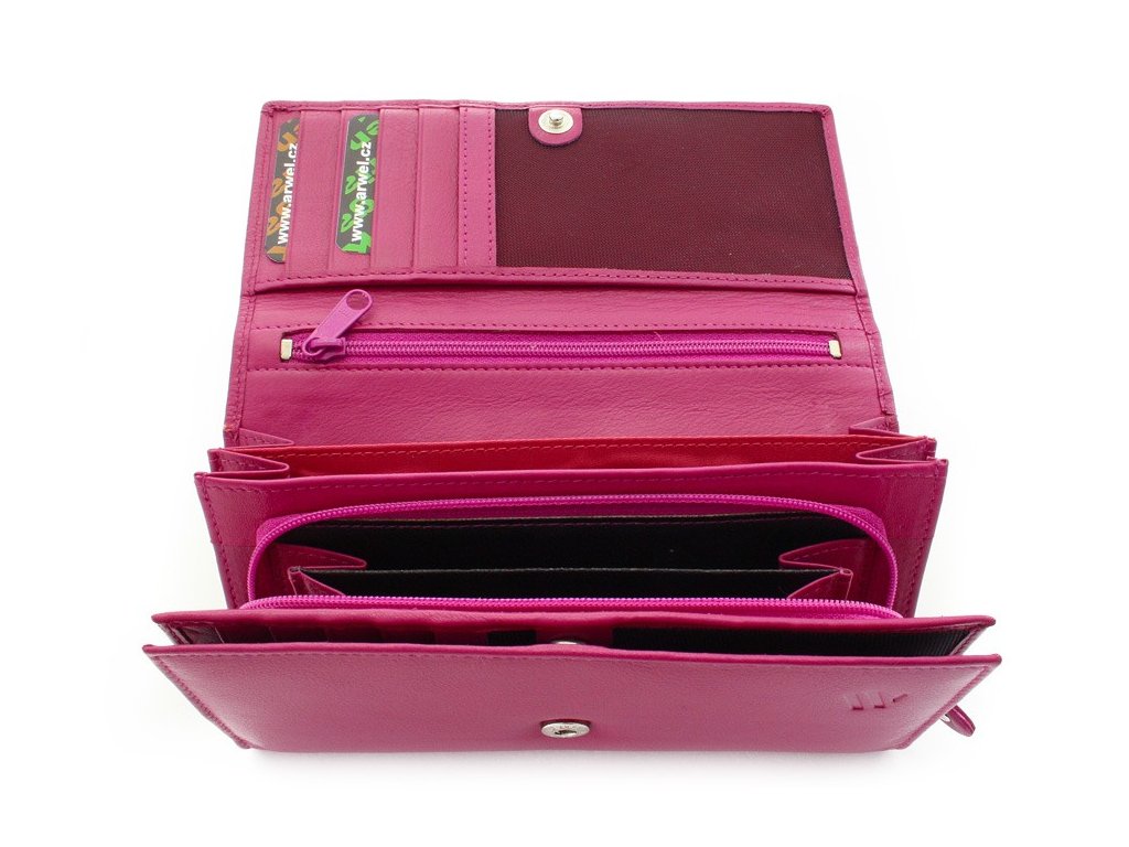 Fuchsiová dámska listová kožená peňaženka s poklopom 511-2120-36