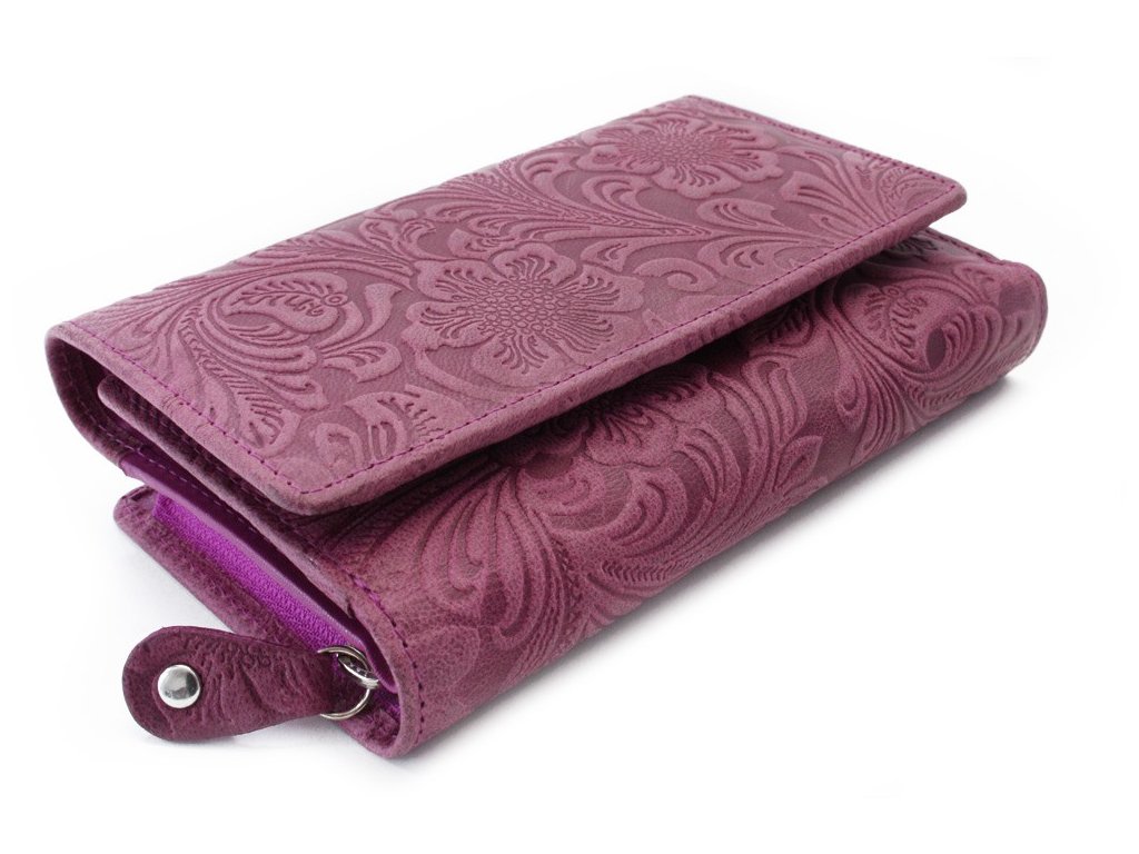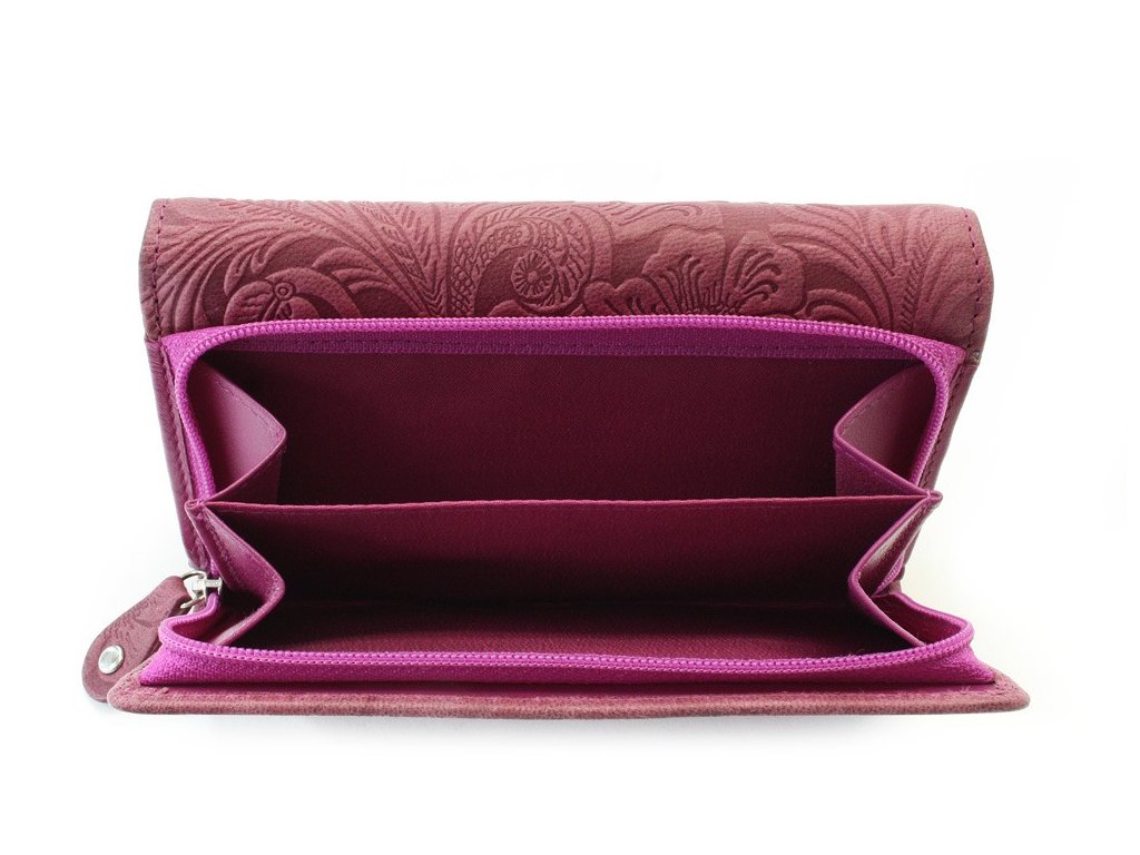 Fuchsiová dámska stredná kožená peňaženka s poklopom 511-2266-36