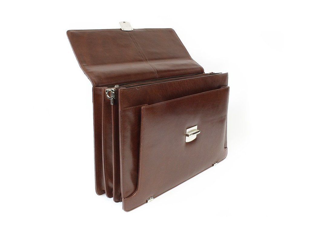 Hnedá kožená aktovka so štyrmi vnútornými priehradkami 112-6002-40