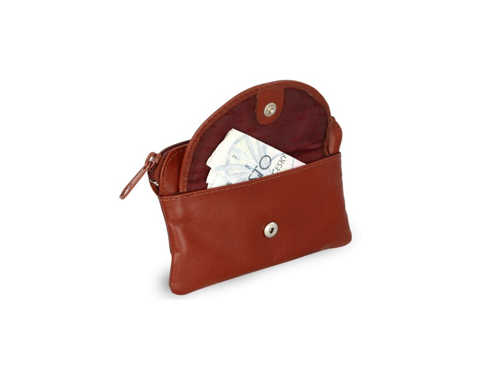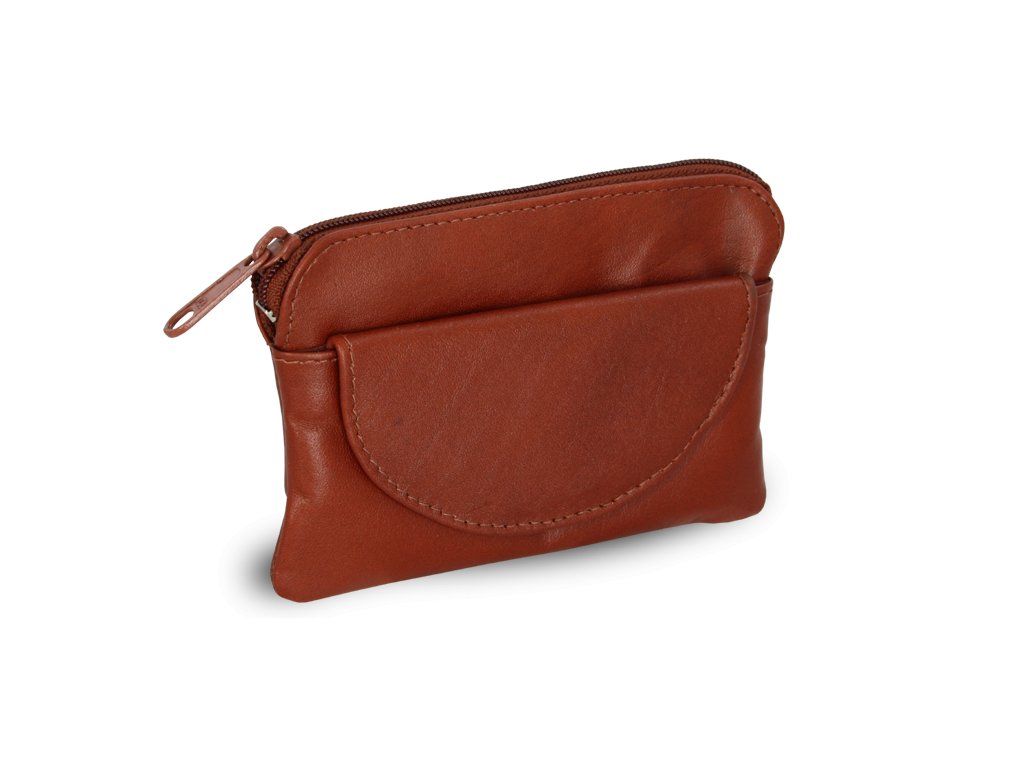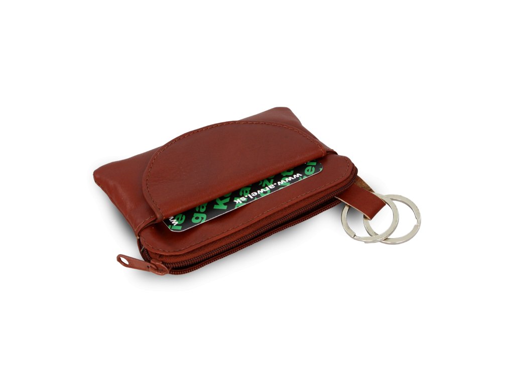 Hnedá kožená kľúčenka so zipsovým a poklopovým vreckom 619-0365-41