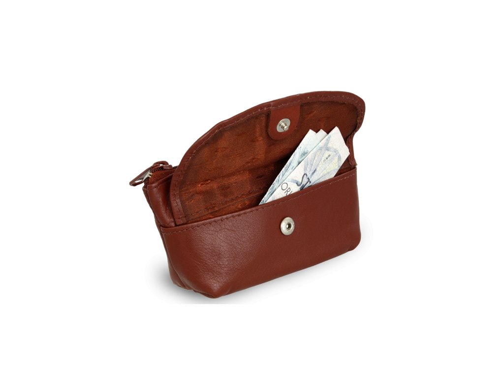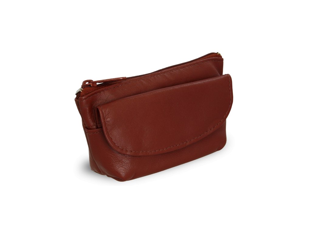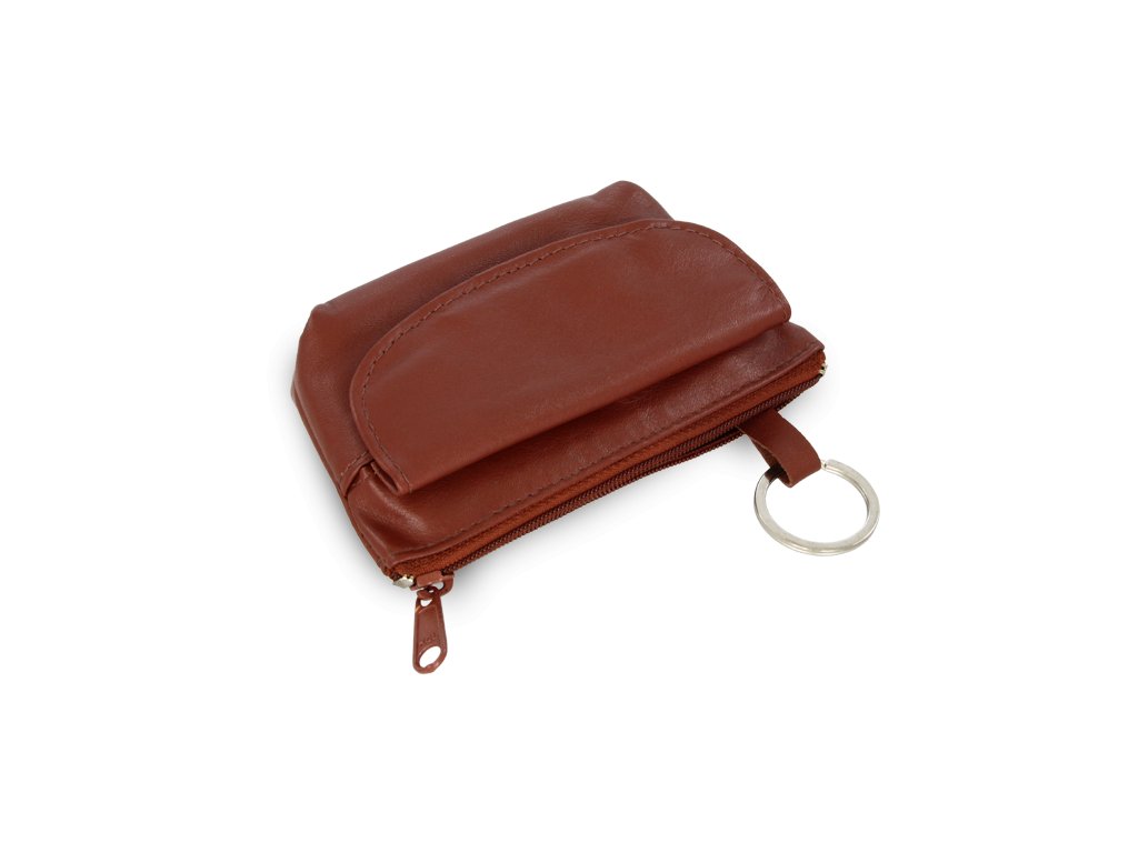 Hnedá kožená kľúčenka so zipsovým a poklopovým vreckom 619-0369-41