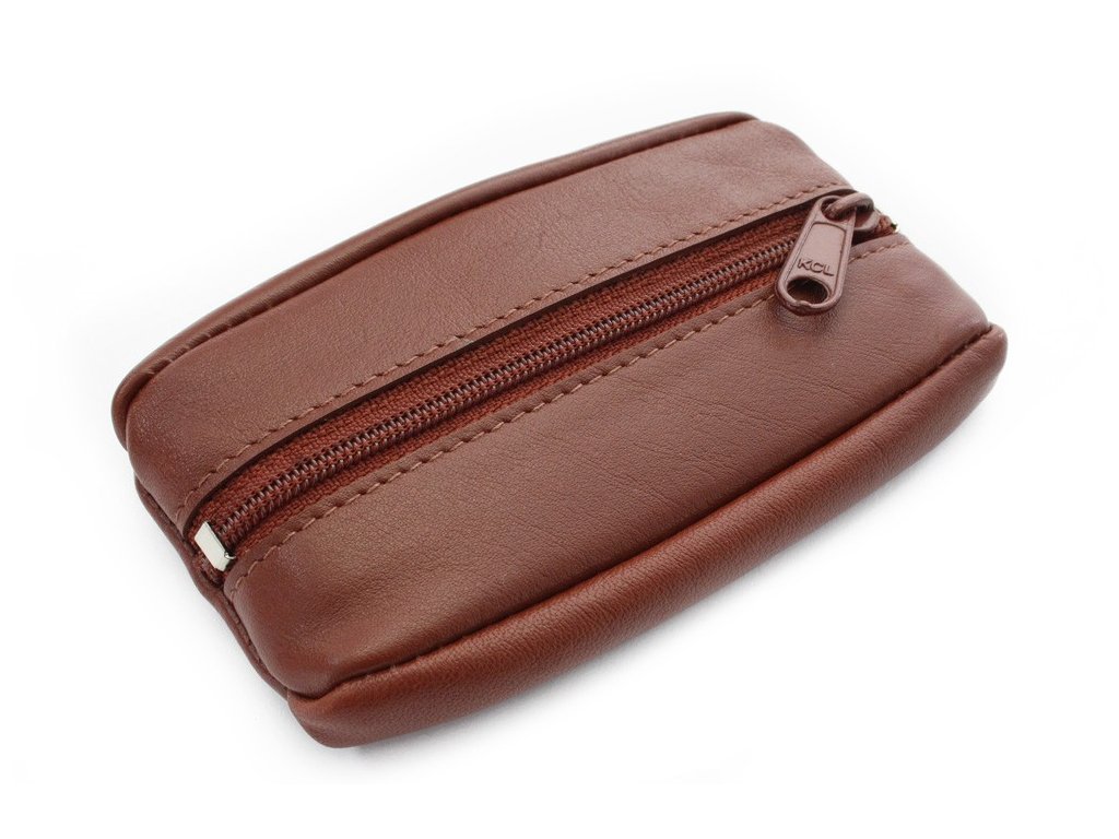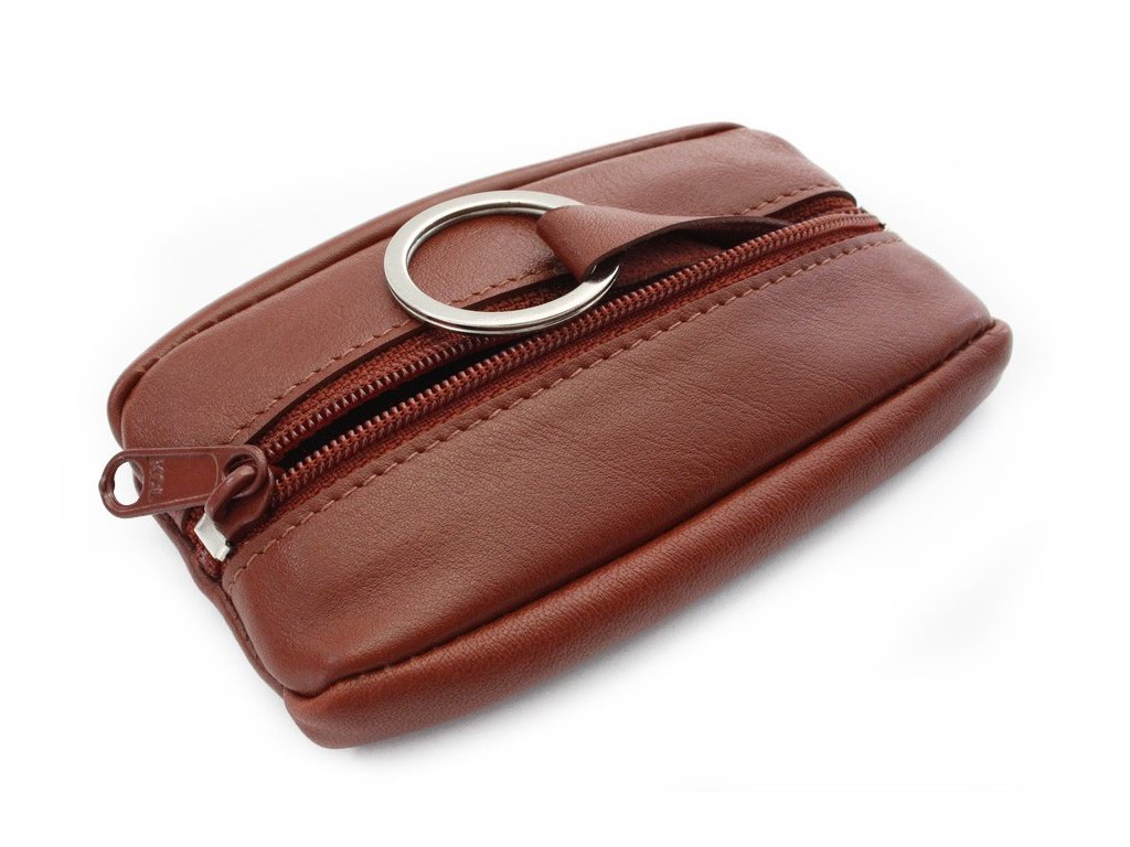 Hnedá kožená kľúčenka so zipsovým vreckom 619-2418-41