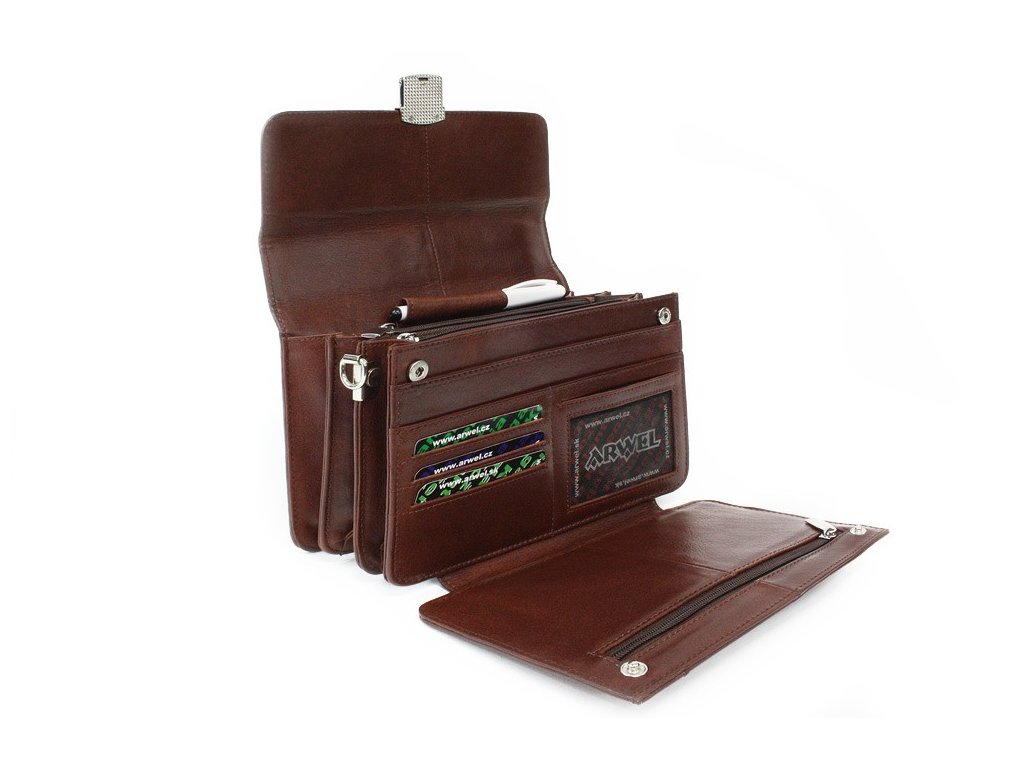 Hnedá pánska kožená etue so sklápacím registrom a držadlom 611-2415-40